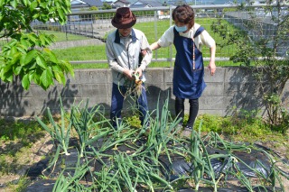 農園の作物、たまねぎ・サンチュが収穫できました。