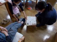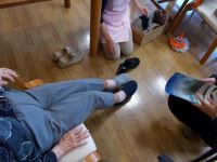 入居者様が日々履いていらっしゃるシューズはとても大切で、足に合わないシューズを履いていると転倒の危険性もある。また、高齢の方は浮腫みや飲んでいる薬で足のサイズが変わる為、歩行状態と病気の把握も大切。とのことでした。