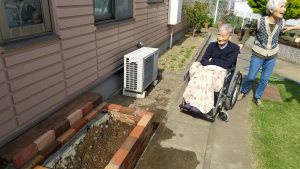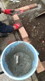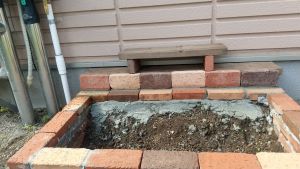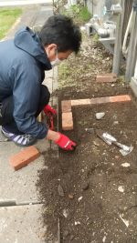 はぴね水戸の庭師こと料理長が、レンガで花壇を作るからセメントと