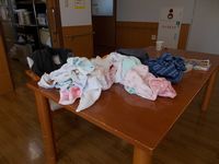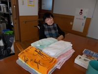機能訓練の一環として洗濯物を畳んでもらいました。