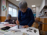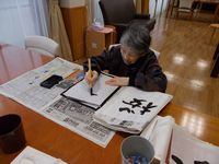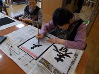 この落ち着いた日の午後、お習字をしました。