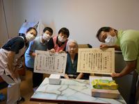 今日は、敬老の日には少し早いですが100歳を迎えられたご入居者様のお祝いを