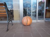 職員のお家で作った「巨大カボチャ」を頂きました。コンテスト用に育てたカボチャとのこと。鑑賞用ですね。
