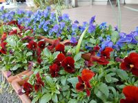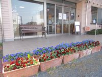 春爛漫。はぴね水戸の玄関にあるテラコッタにパンジーが咲き誇ってます。のち昨年植えた球根からチューリップが開花してくる予定です。近くにはスイセンの花も咲いてますよ。