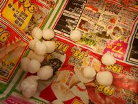 お花紙を半分に切って、水で濡らしてお団子を作るように掌で丸めて・・・