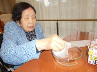 ご入居者様にもお手伝いいただき、まるでアラレの様な美味しそうな豆が出来ました!