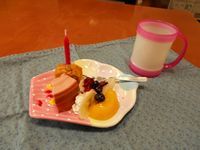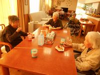 はぴね水戸では、毎月お誕生会を開催しています。1階のご入居者様で11月生まれは岡野様です。全員でお飾りやケーキを作ります。そして皆さん、ご満悦に食べられてますね。( ´艸`)
