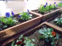 冬でも綺麗に咲いてくれる赤色と紫色のビオラを