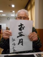 さて、今日はぴね水戸では新年の書初めを行いました。