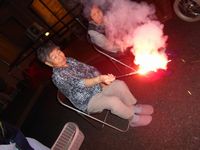 1Fフロアにて、納涼花火大会を行いました。花火をやる