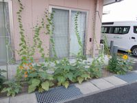 ゴーヤがやっと花を付けました(^^) 日照不足でなかなか