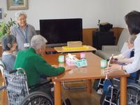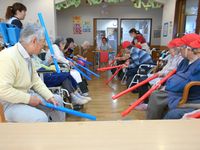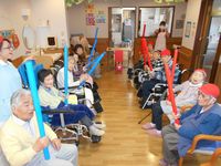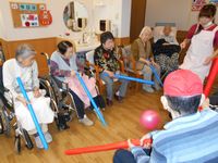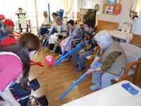 フロア内でチーム分けをし、棒サッカー大会を開催しました!