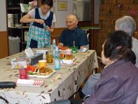夏祭り風のお食事と、夏の風物詩:スイカ割りです!