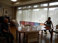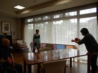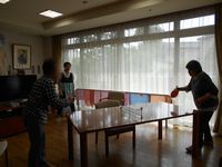 食堂のテーブルを使って、卓球をやってみました。これぞ