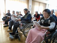 大人気、月一回の音楽療法!ホールに入りきるギリギリ