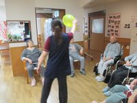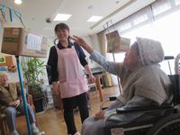 今日は、機能訓練の一環として、脳トレと玉入れを行い
