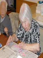 今日は脳トレを行いました!ご覧ください、ご入居者様達の、