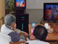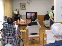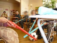 機能訓練の一環で、棒サッカーを行いました!座りながら出来る