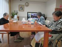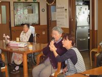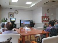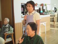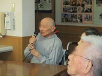 カラオケの音楽と歌声に誘われて、入居者様方が続々とホールへ