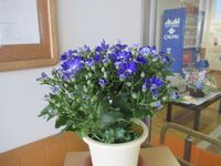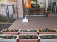 プリムラ、パンジーを植えて、サイネリアを玄関に置きました。