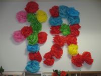 カラフルなので、お花がとても綺麗です。たくさん折って頂きましたので「寿」と「祝」を