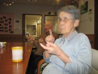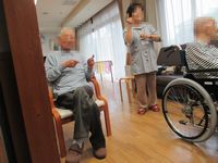 ご利用者様と輪になり、紙芝居や指体操、しりとりなどを