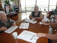 ご利用者様達も談笑されながらおしぼりを作って下さいます。