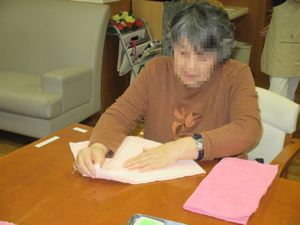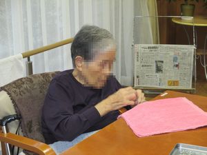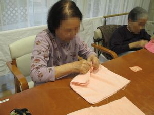 今日は、手作業の一環としまして雑巾を縫っていただきました。拭き掃除に使用する為の物です。