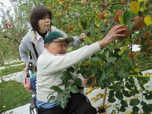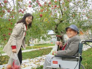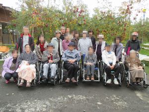 11月17日に1階のご利用者様10名とご家族様10名・スタッフ7名の合計27名で奥久慈大子へりんご狩りに行って参りました。
