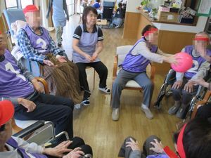 1階のご利用者様と毎年恒例の運動会を行いました。紅白に分かれながら