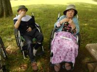 木陰で一服されるご入居者様達のご様子になります。