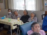 そんな中から、娘様より花束をいただいて笑顔を浮かべる入居者様の写真を。