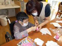 作りたい物を選んだり、薄紙をちぎったり、刷毛ではりつけたり、と、工程がたくさん。