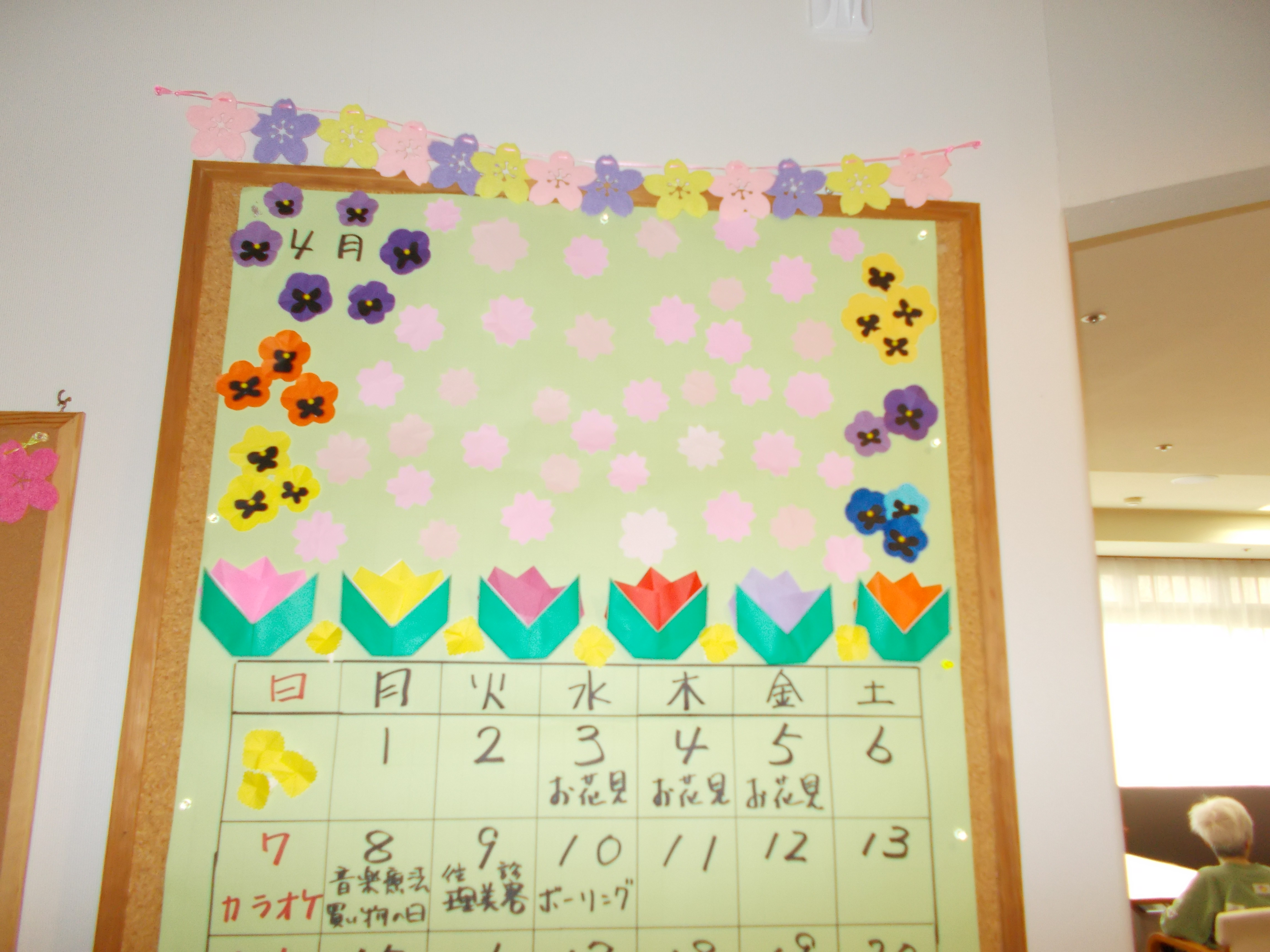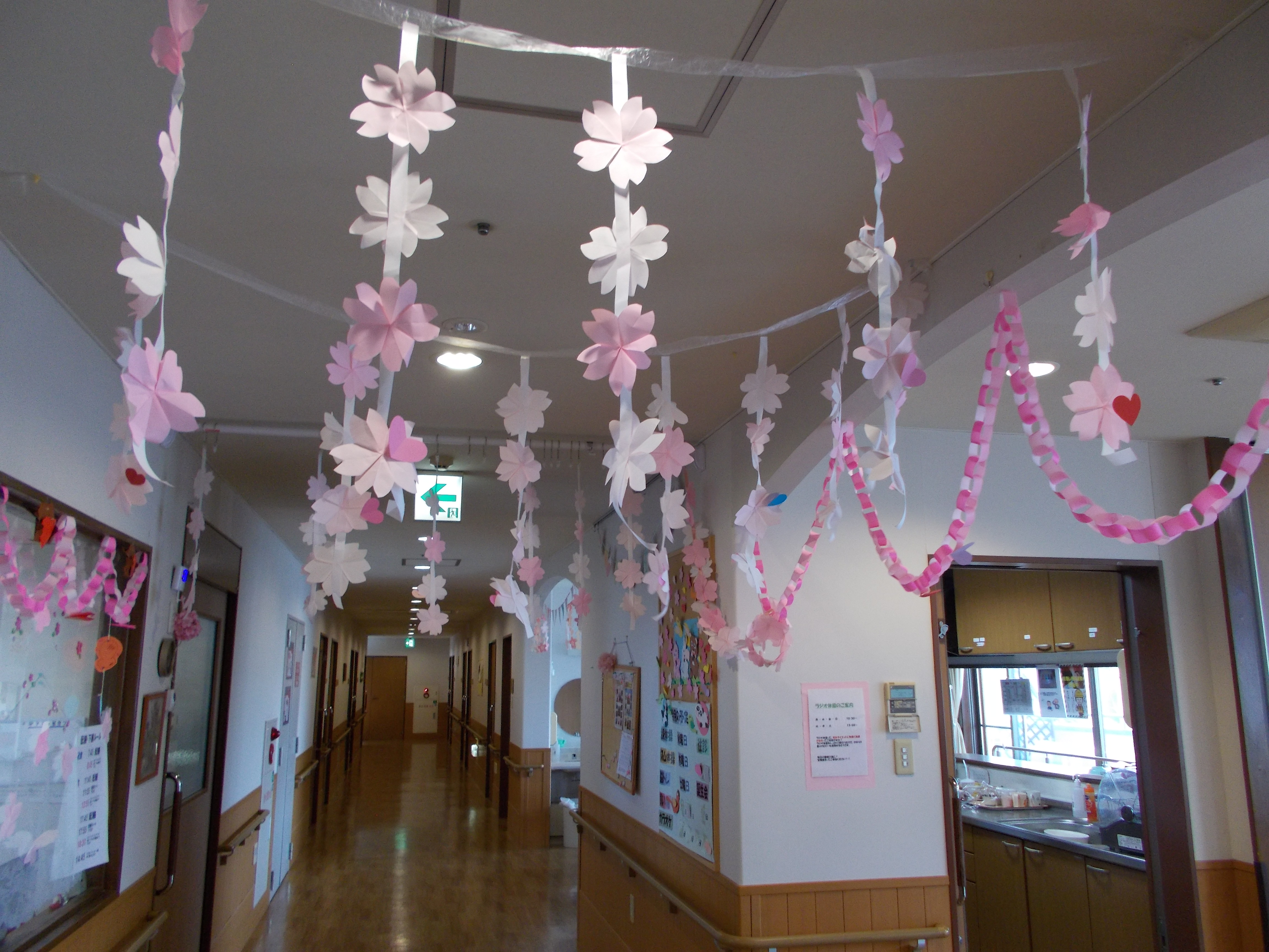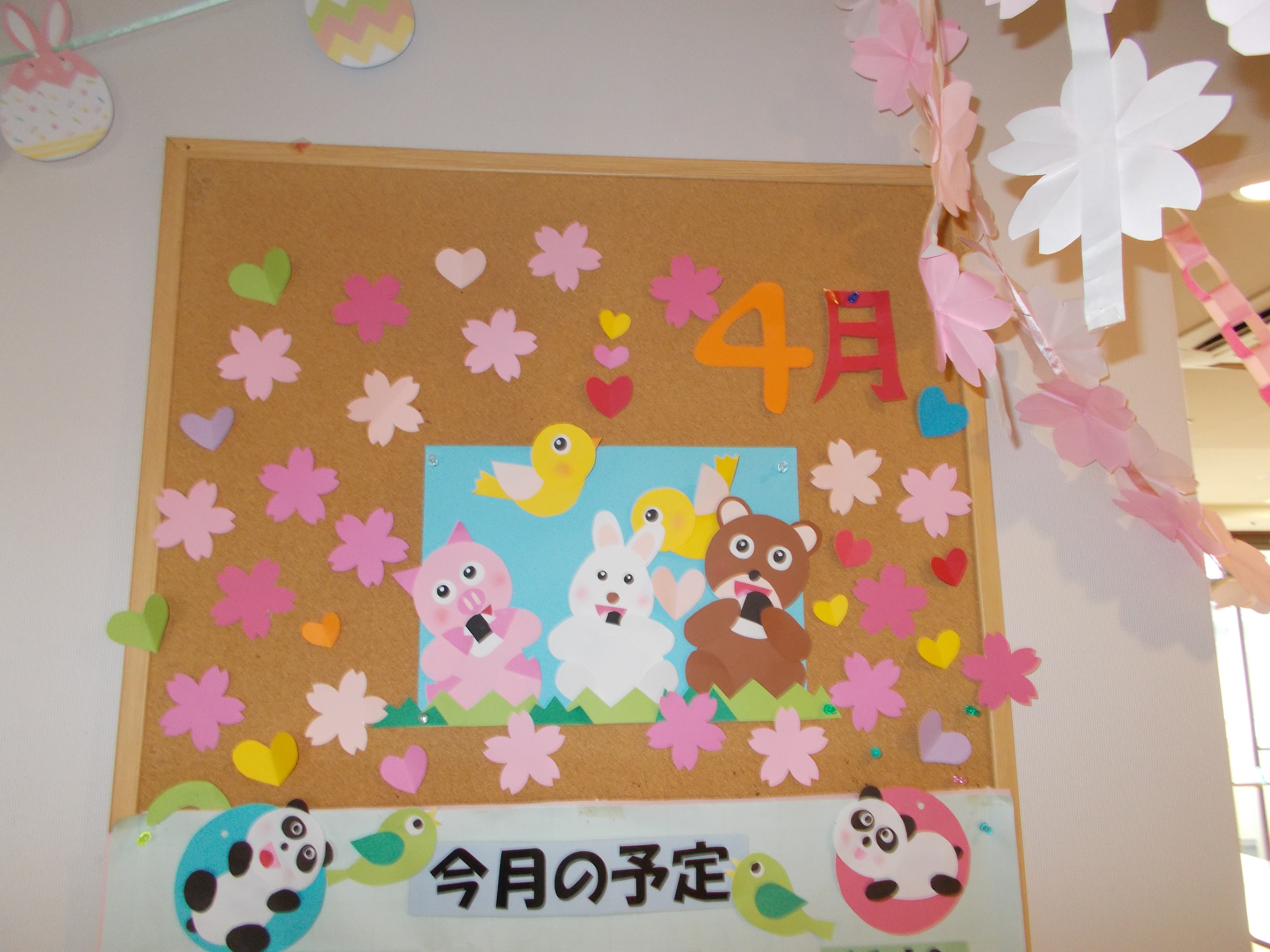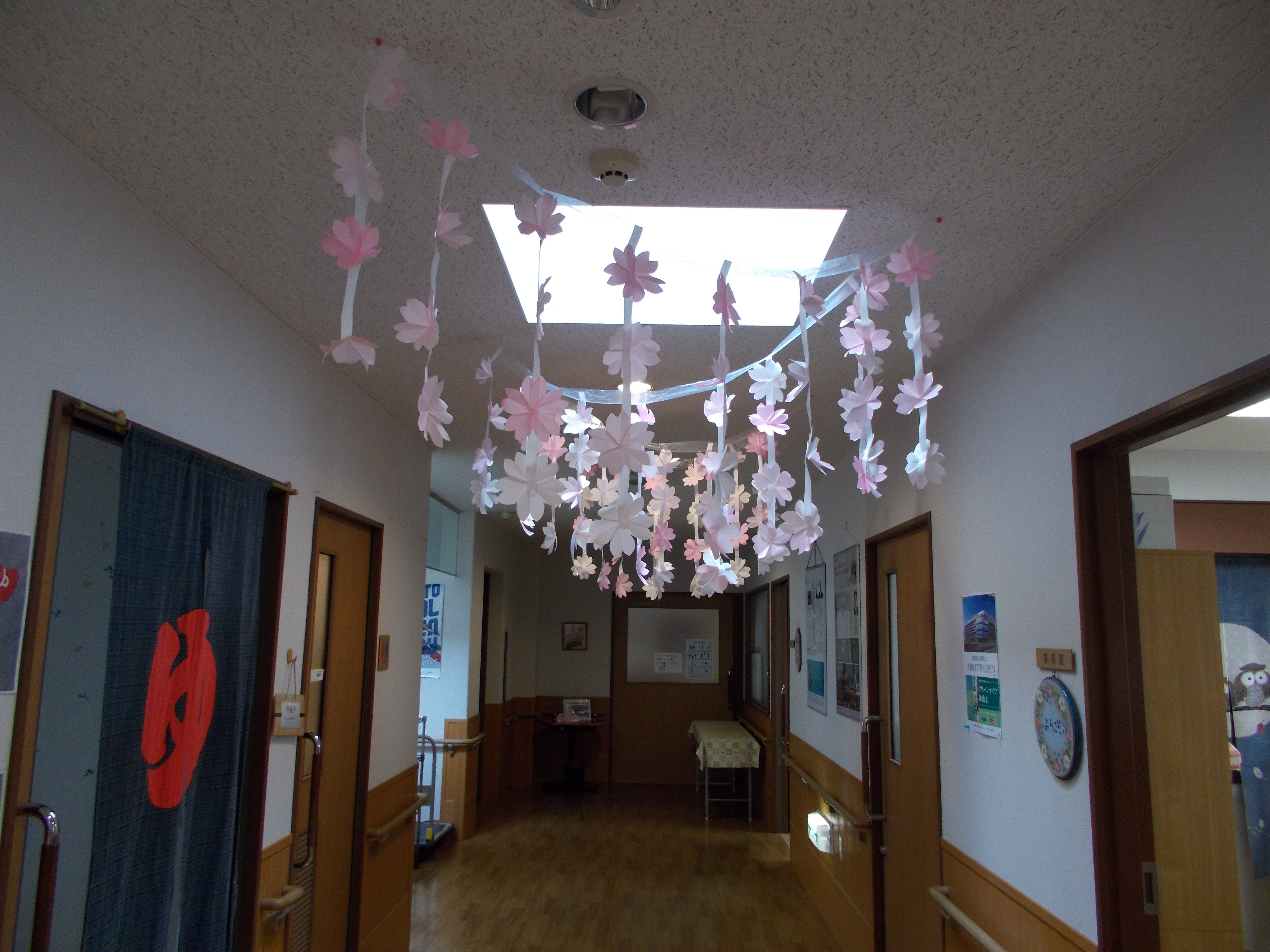 遅ればせながら、玄関、各フロアの4月の飾りをご紹介します。