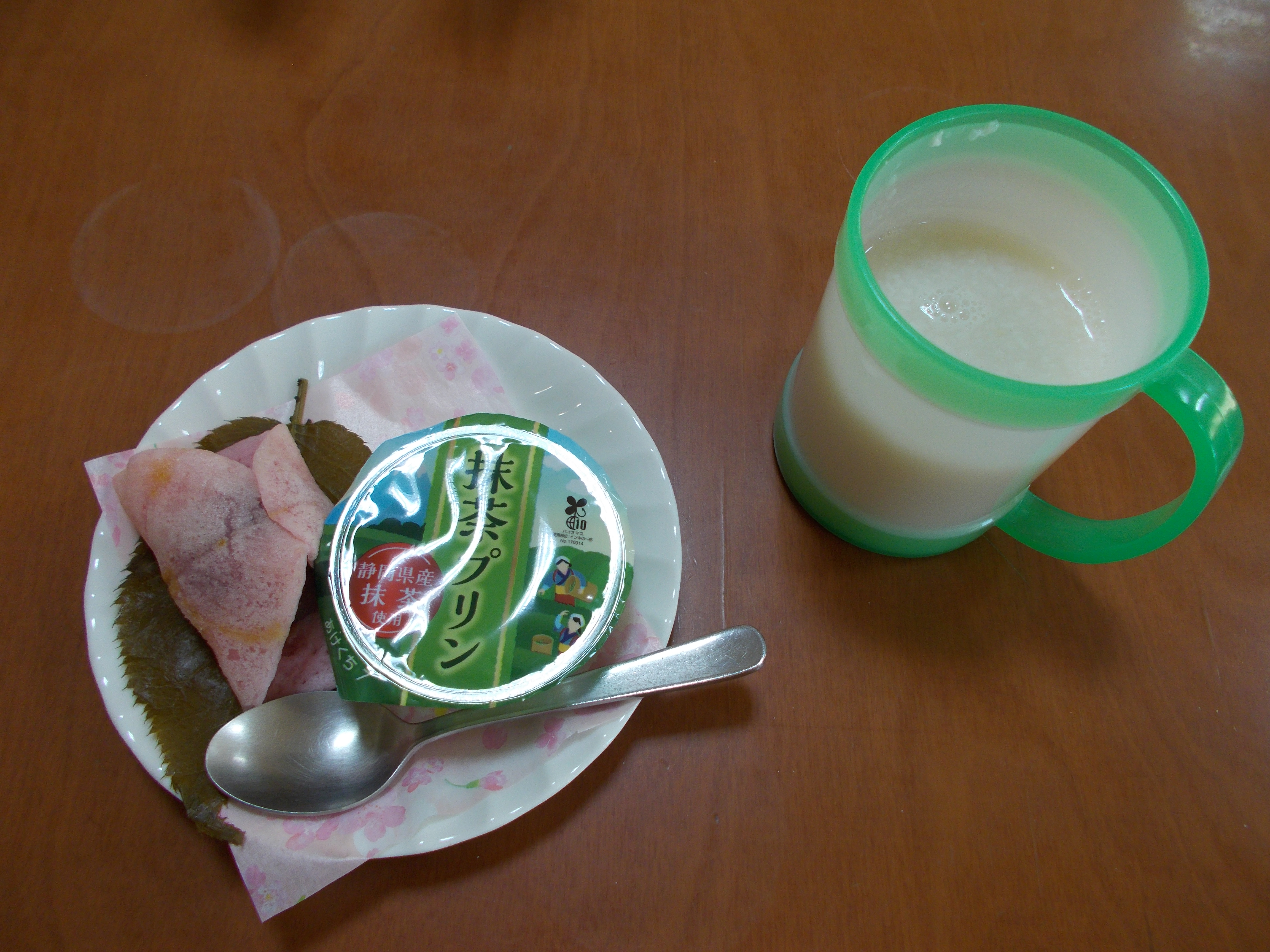 おやつも桜餅と甘酒をプラス。