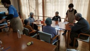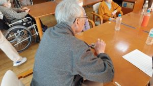 車椅子に座っている方も多くいらっしゃる高齢者施設では、テーブル上でできるレクは負担が