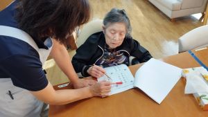 今日は体を使った体操ではなく、脳を動かす脳トレを行いました✏
