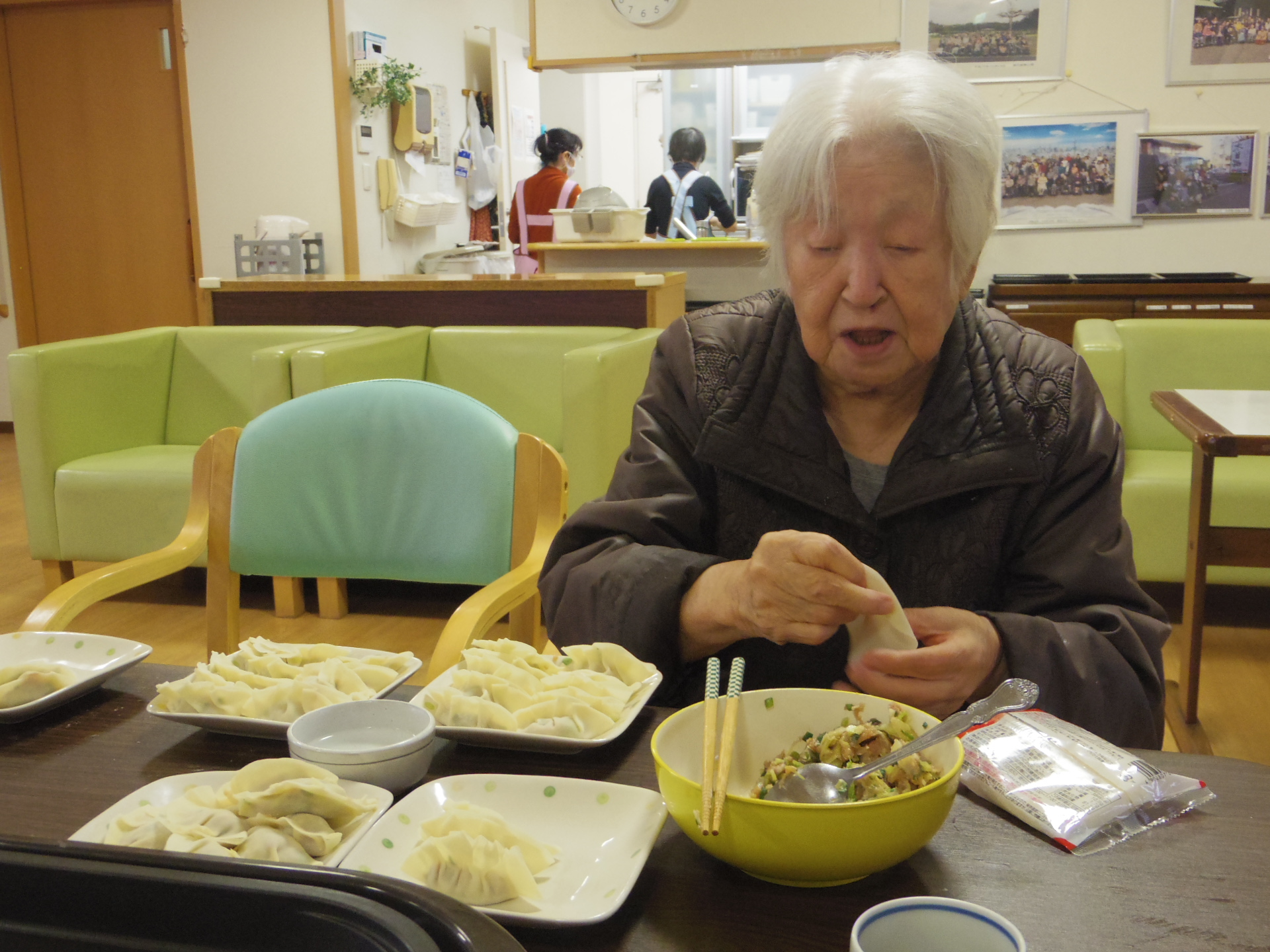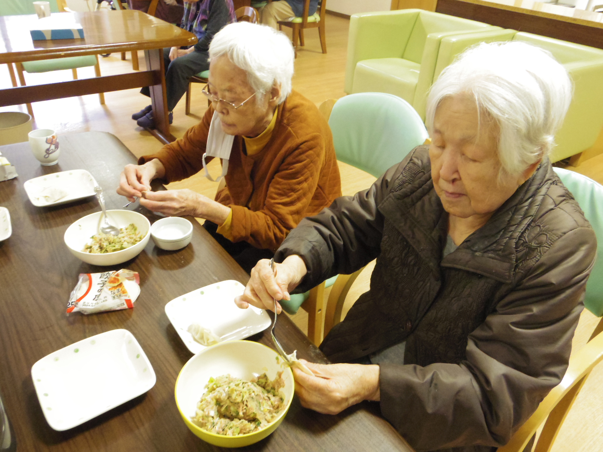 一緒に昼食の餃子作りを行いました♪