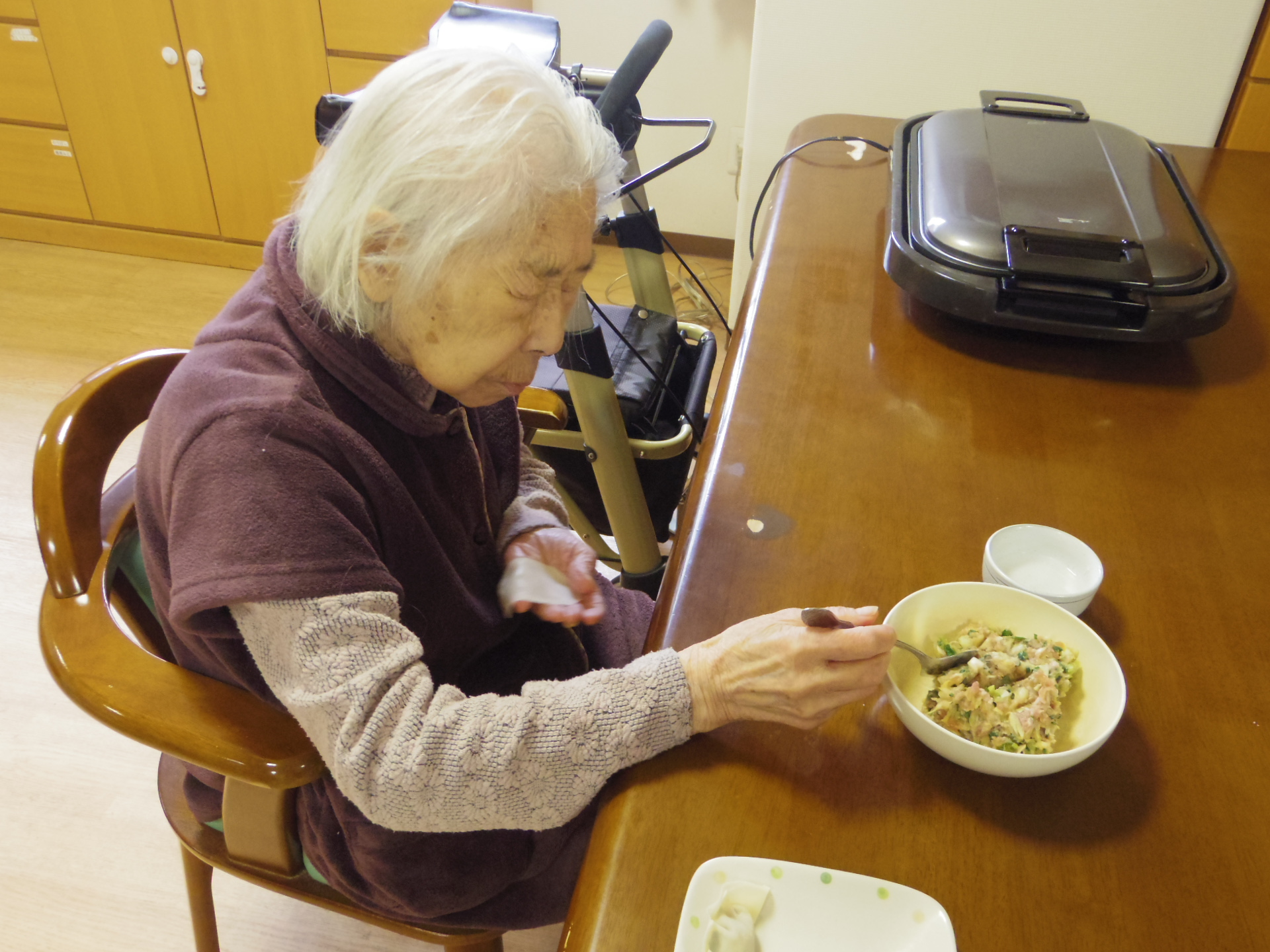 手慣れた入居者様は「こうやれば簡単に作れるわよ♪」