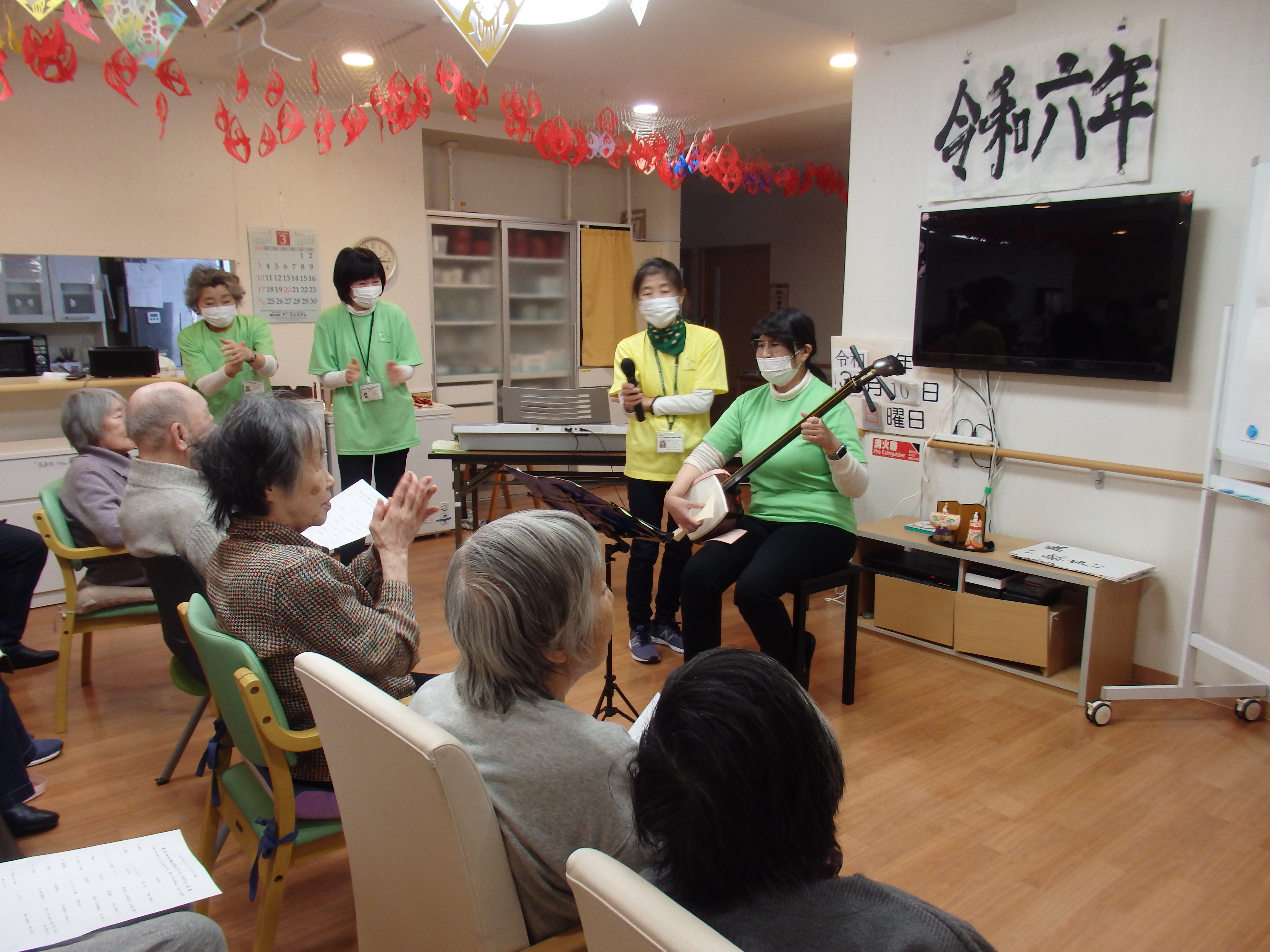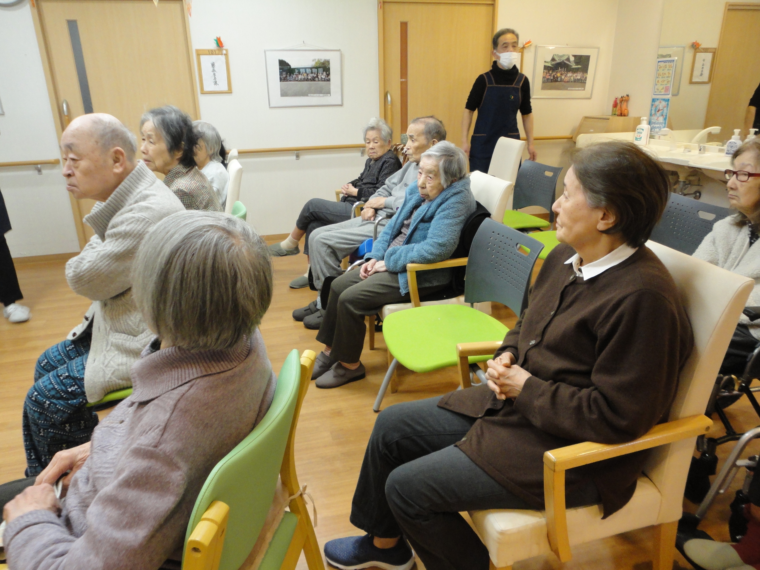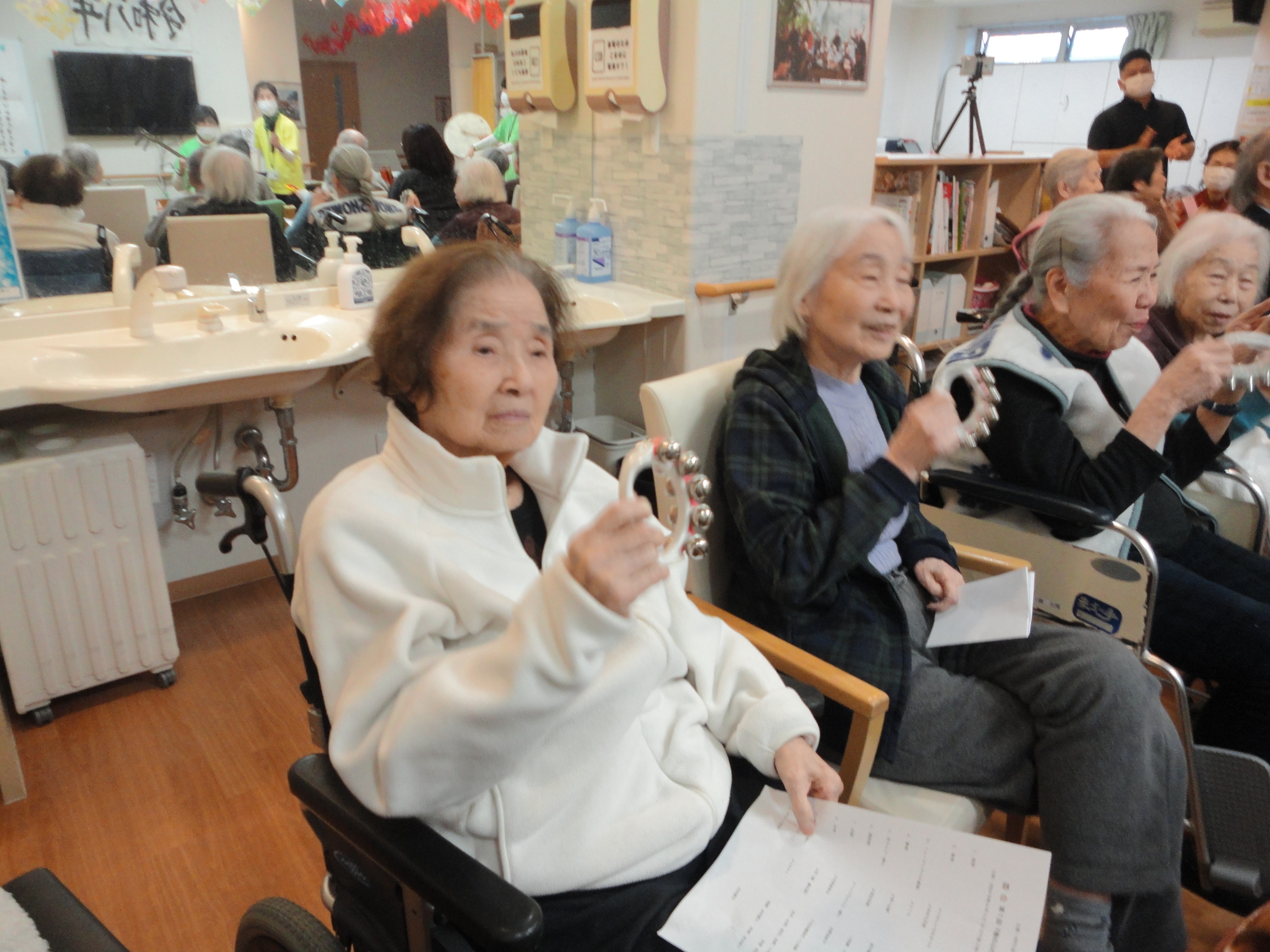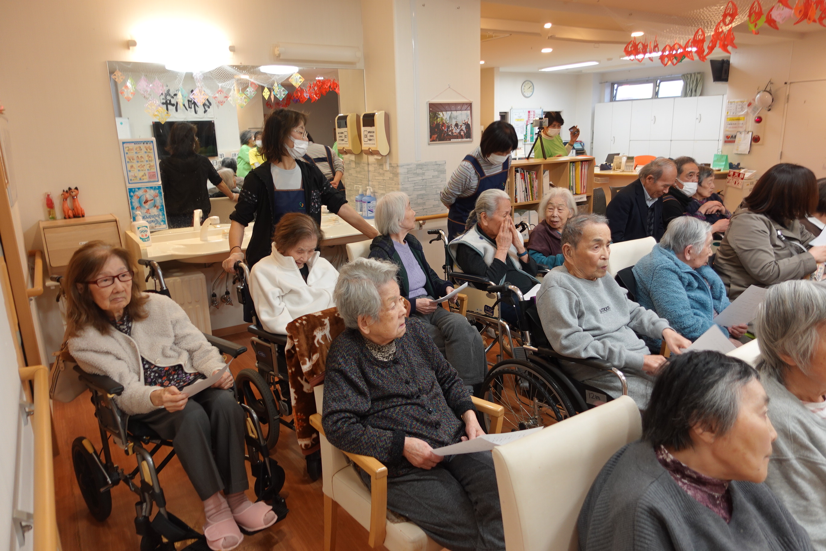ハーモニカ演奏に合わせてみんなでハッピーバースデーの歌を歌い