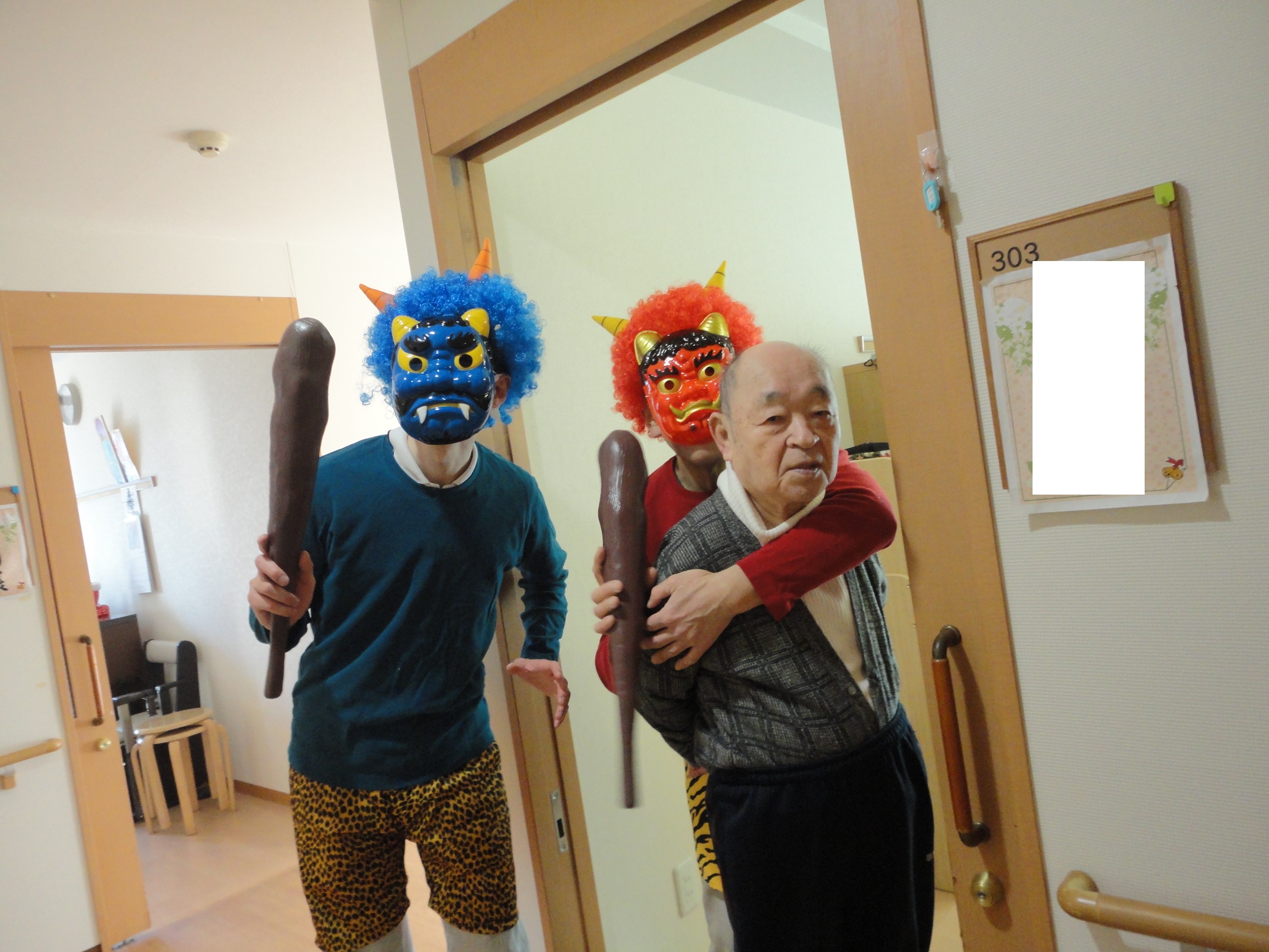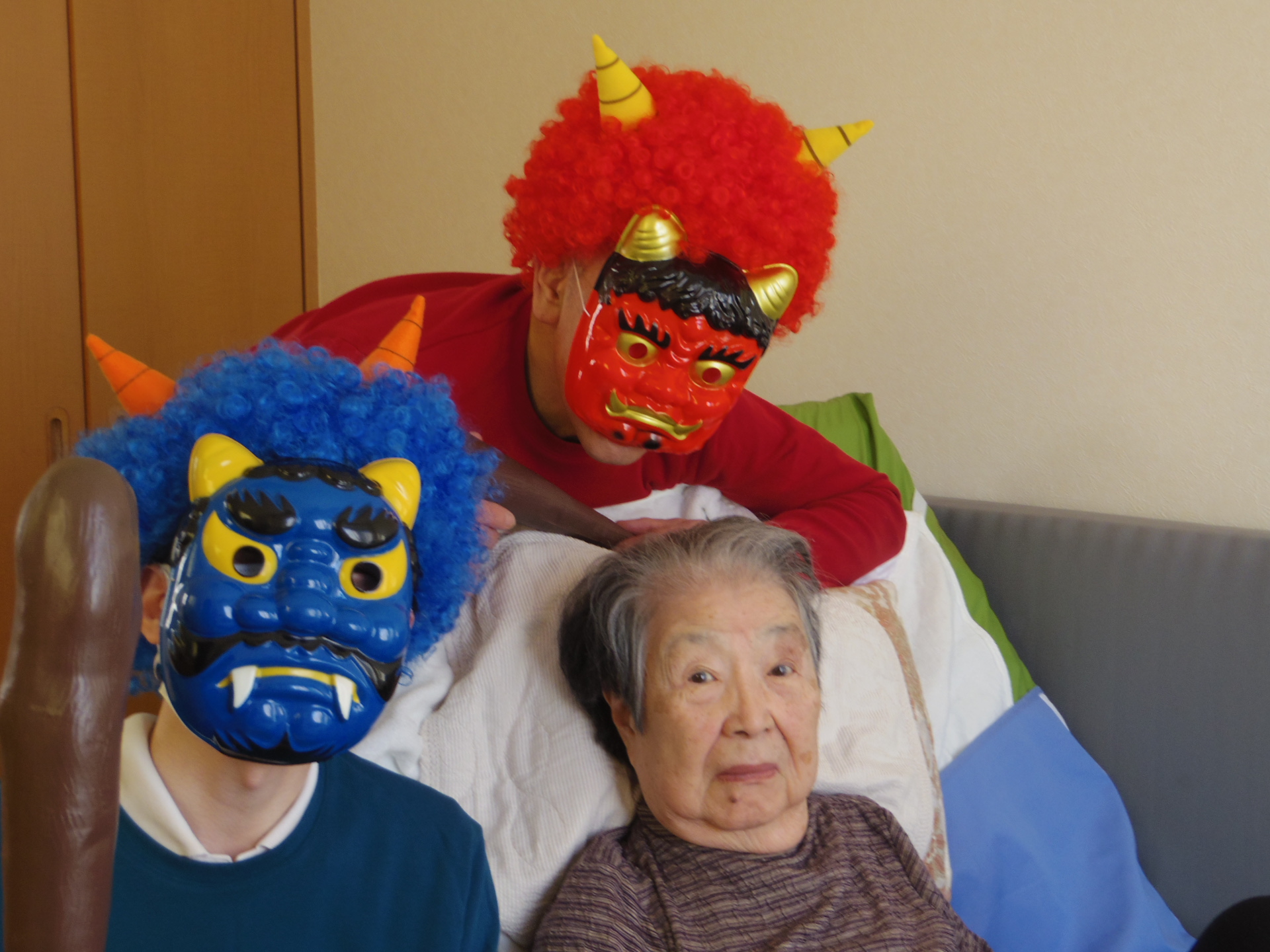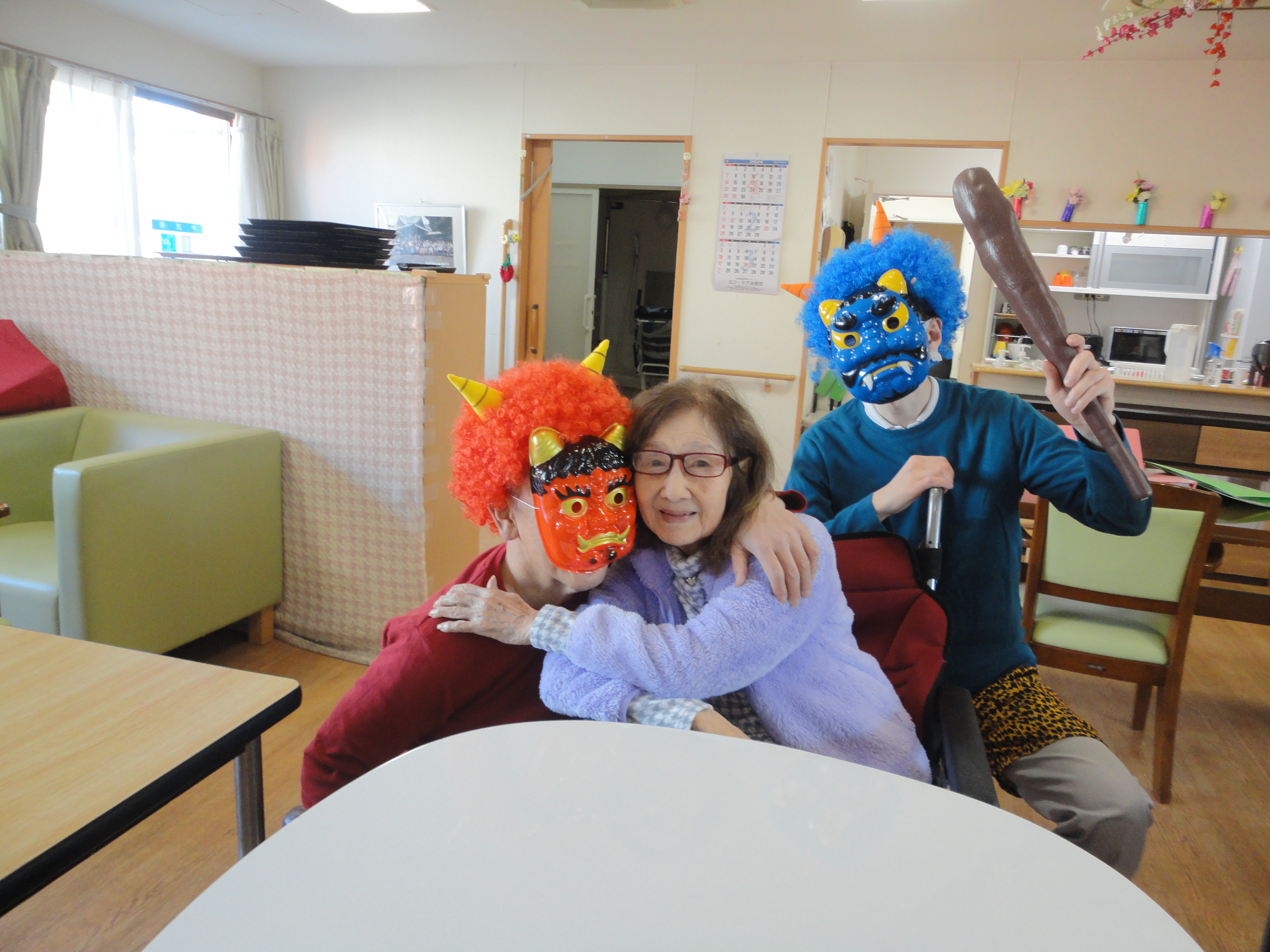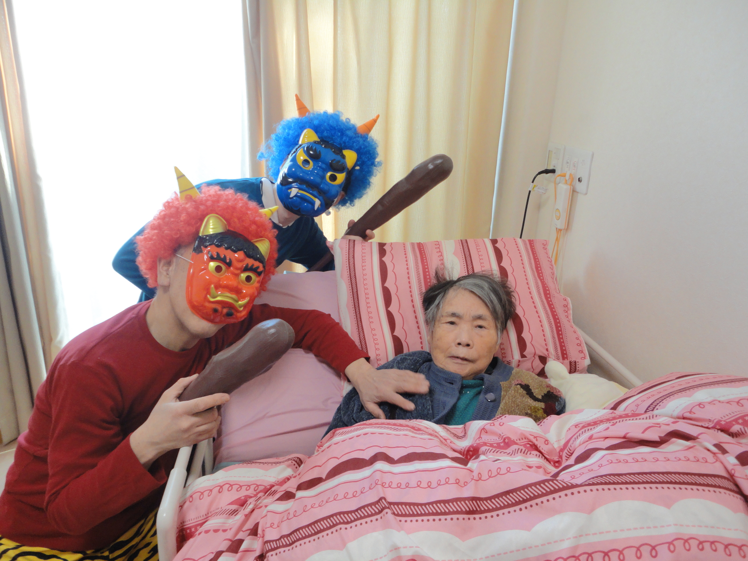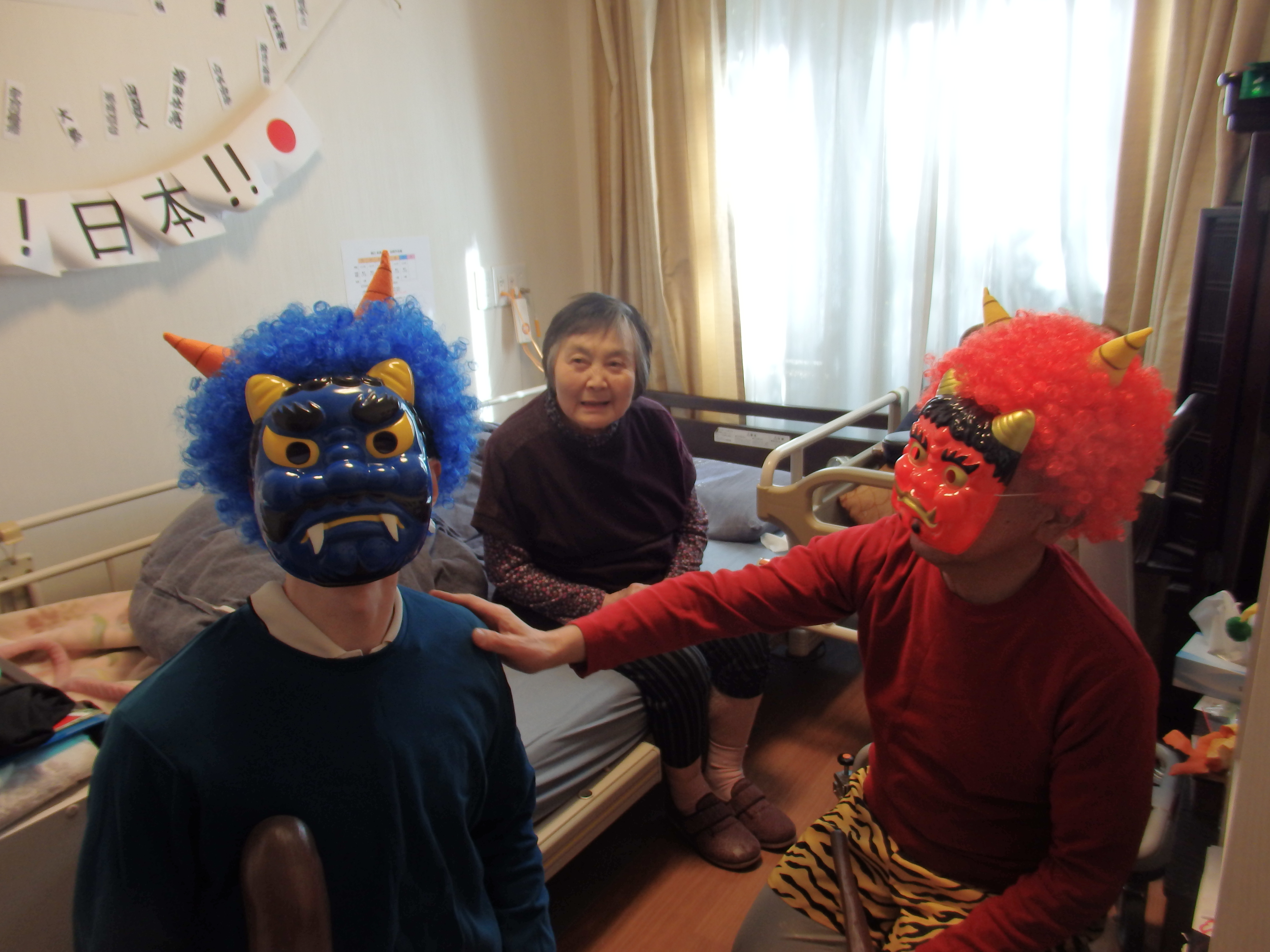 迎え撃つは、豆を持った入居者様方