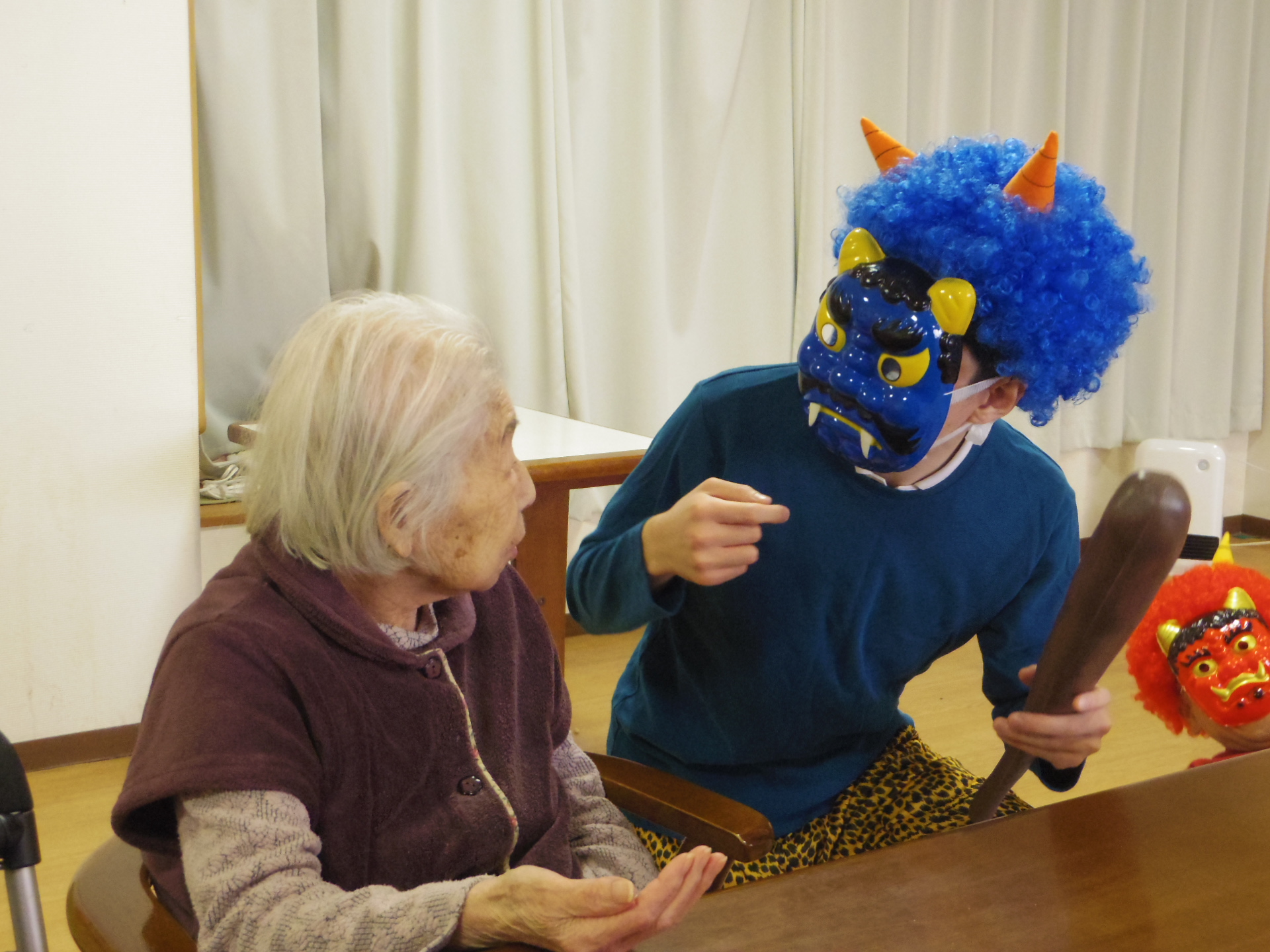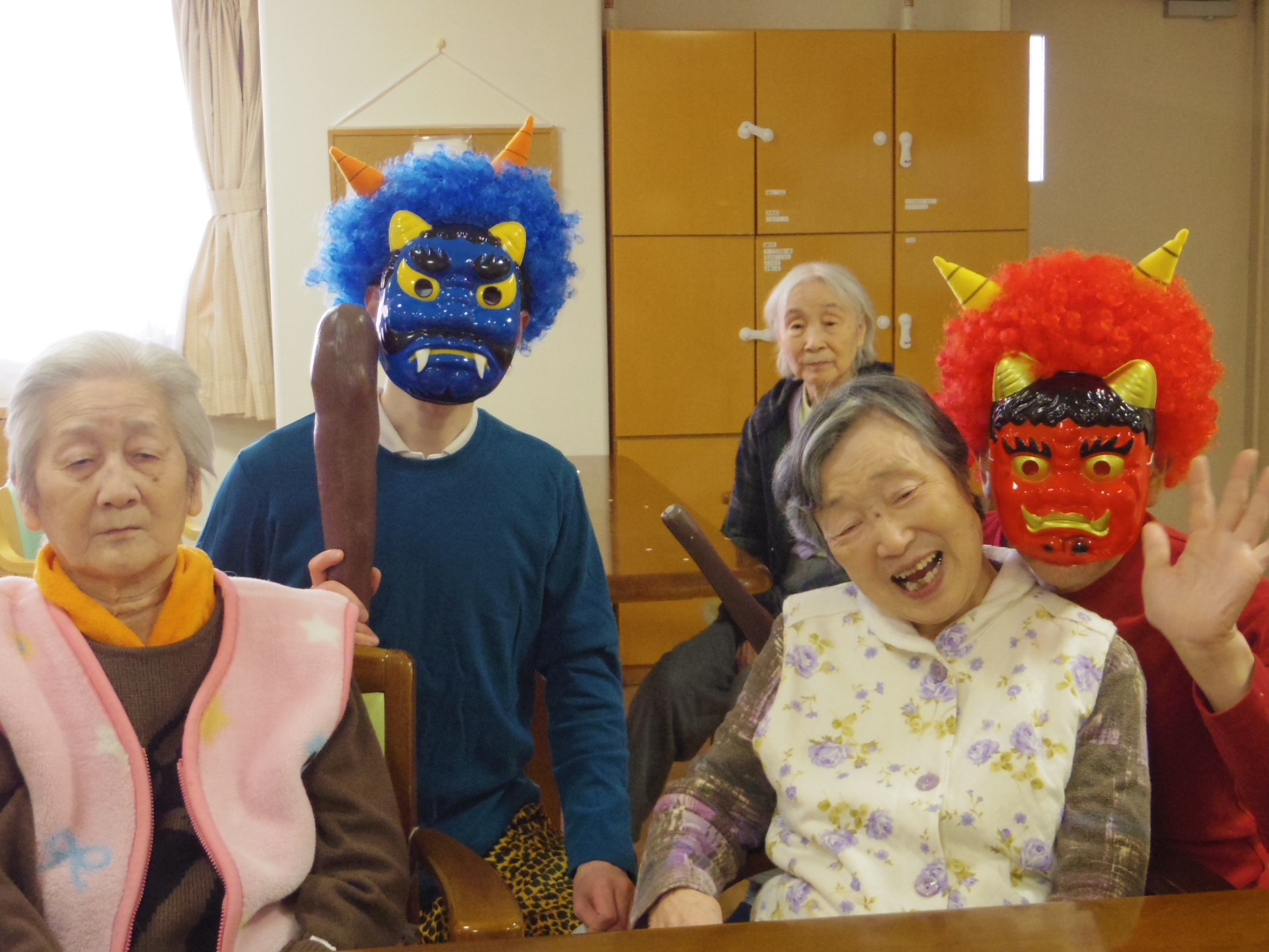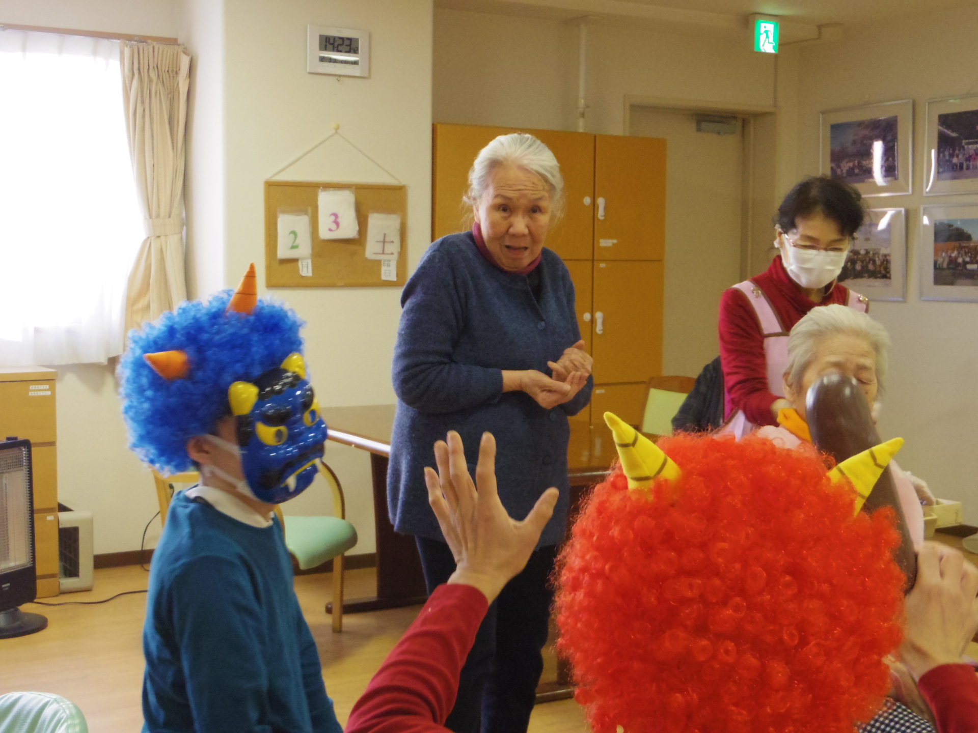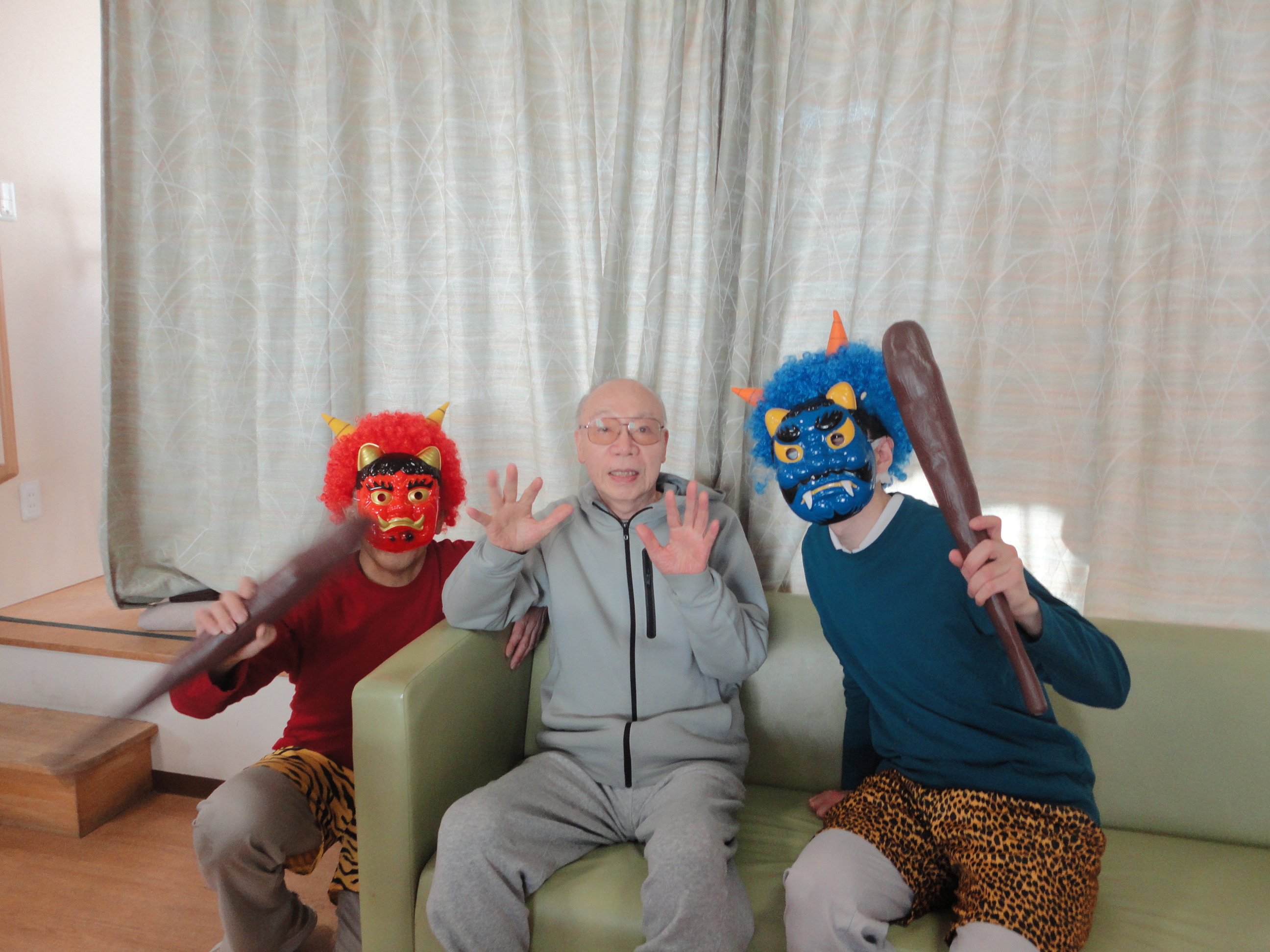 2階の皆さまは、恐い鬼が来てもほとんど怖がる素振りもなく
