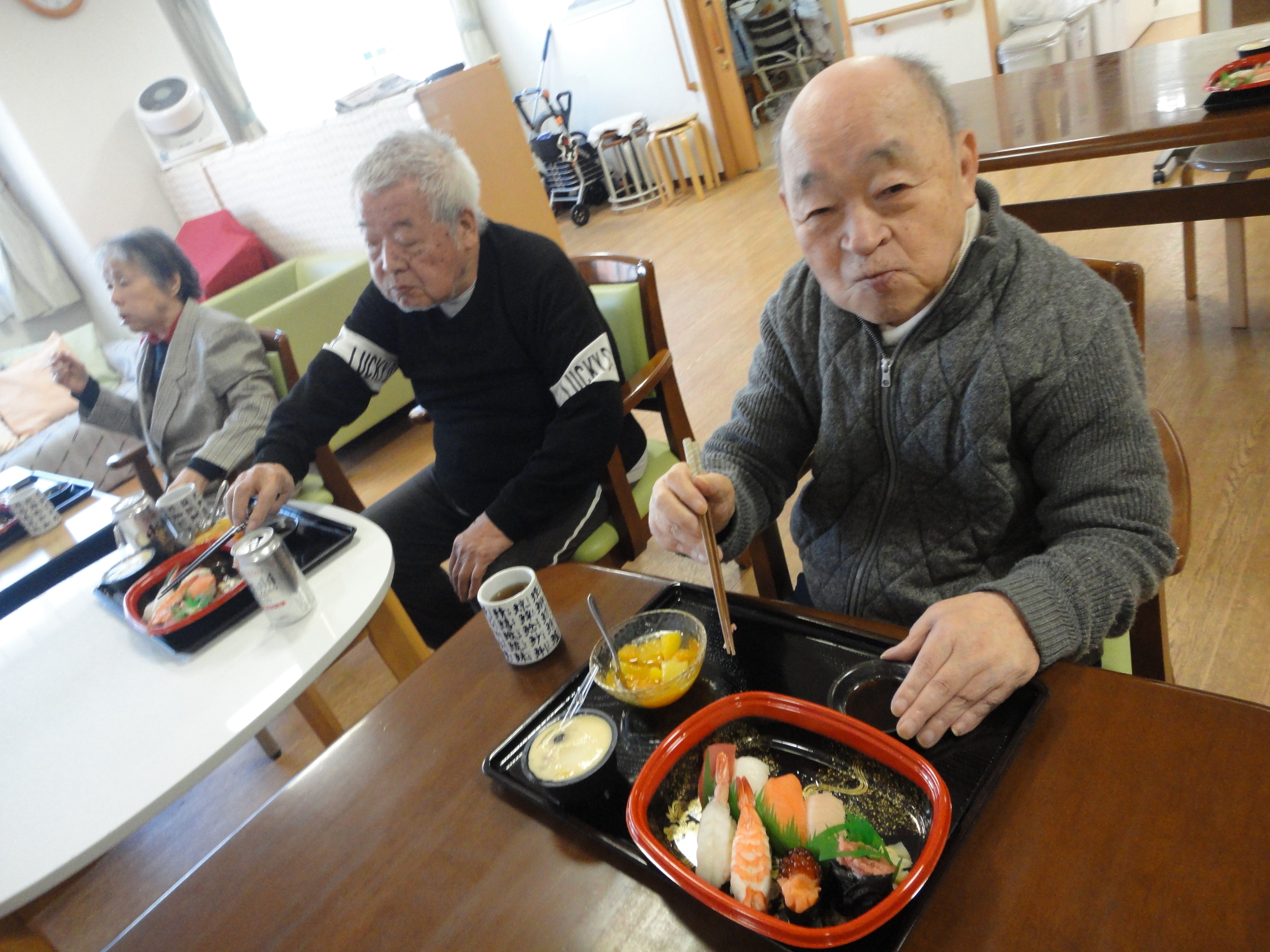 昼食時には、みんなでお寿司🍣で乾杯です!!🍺