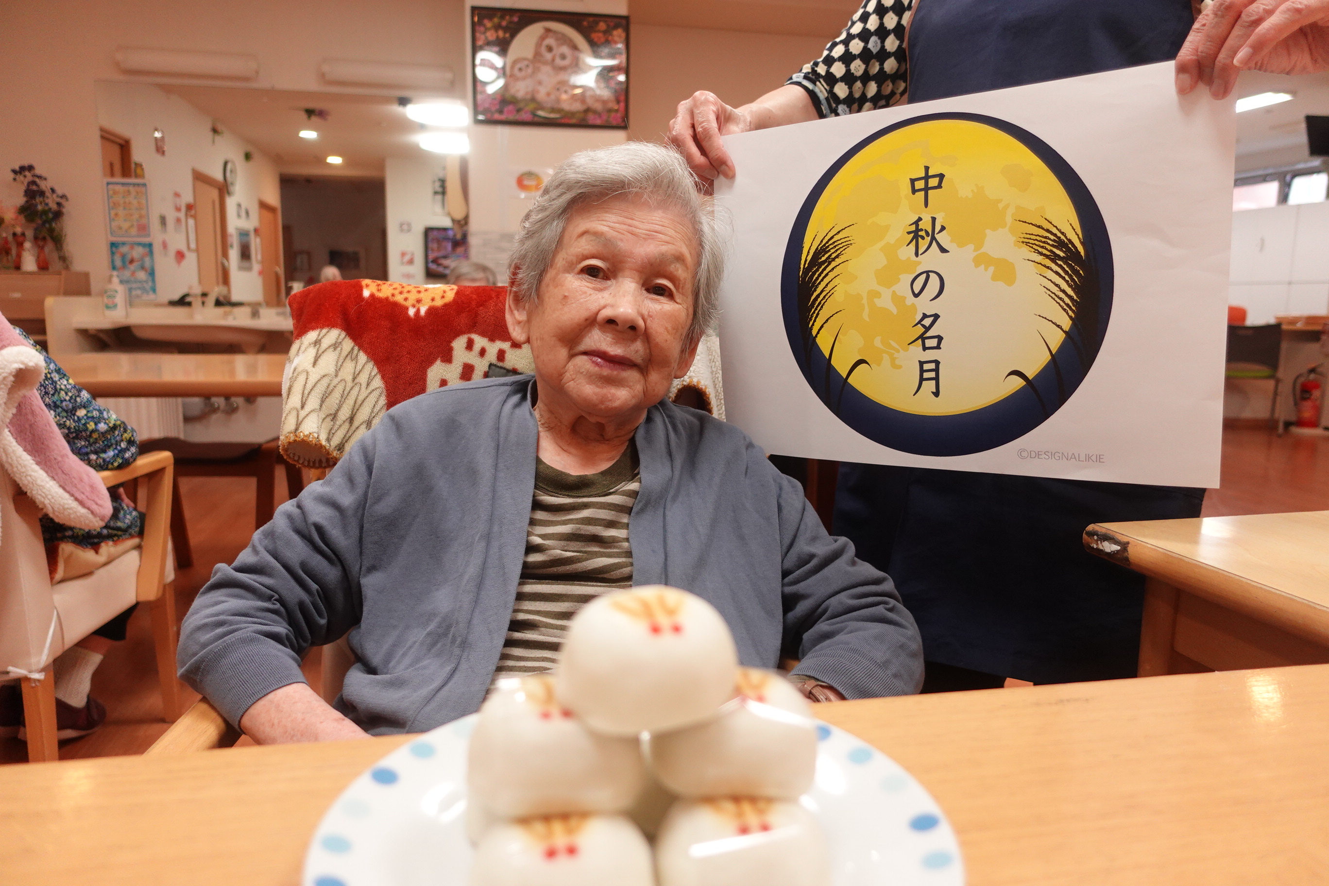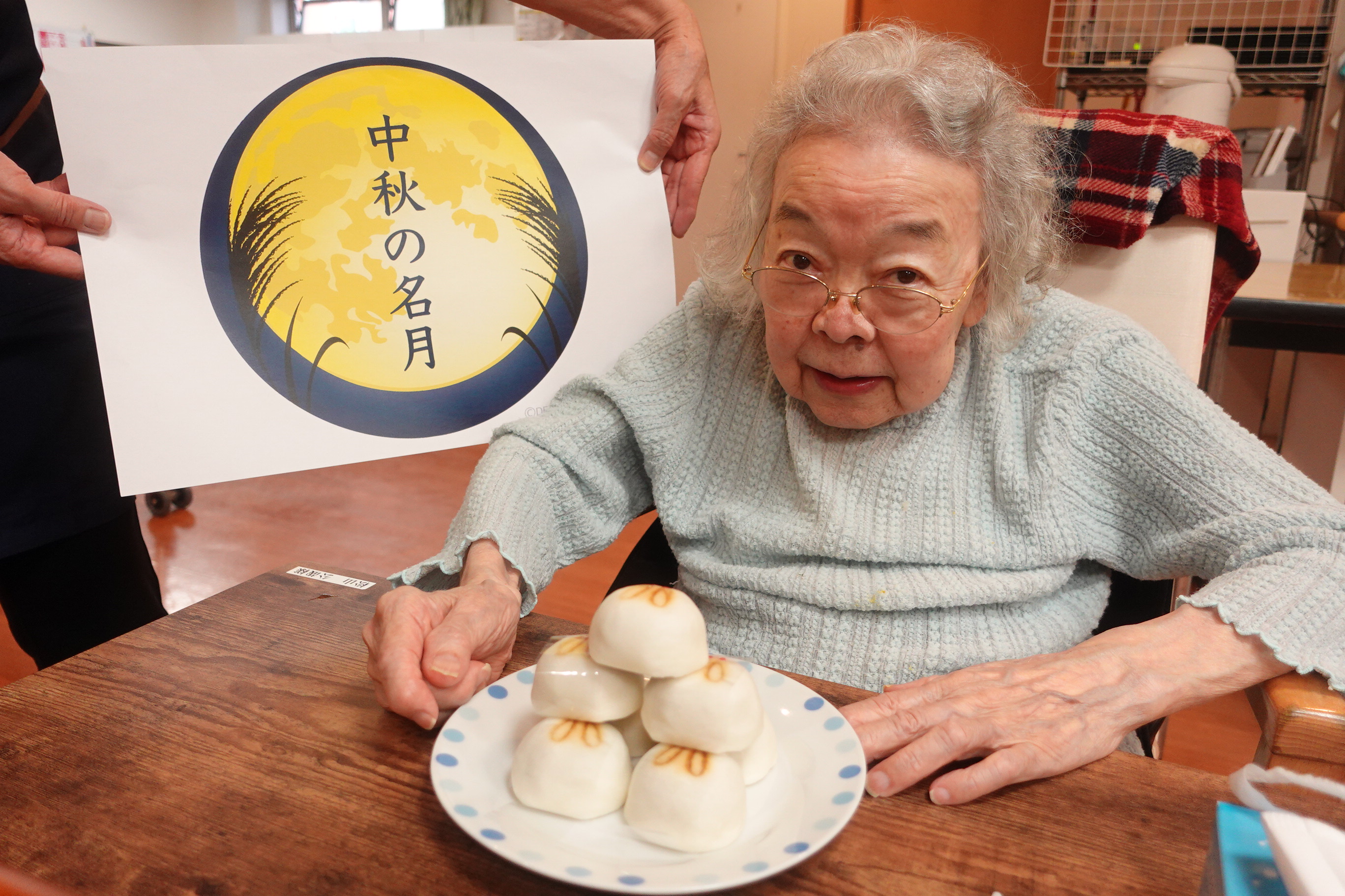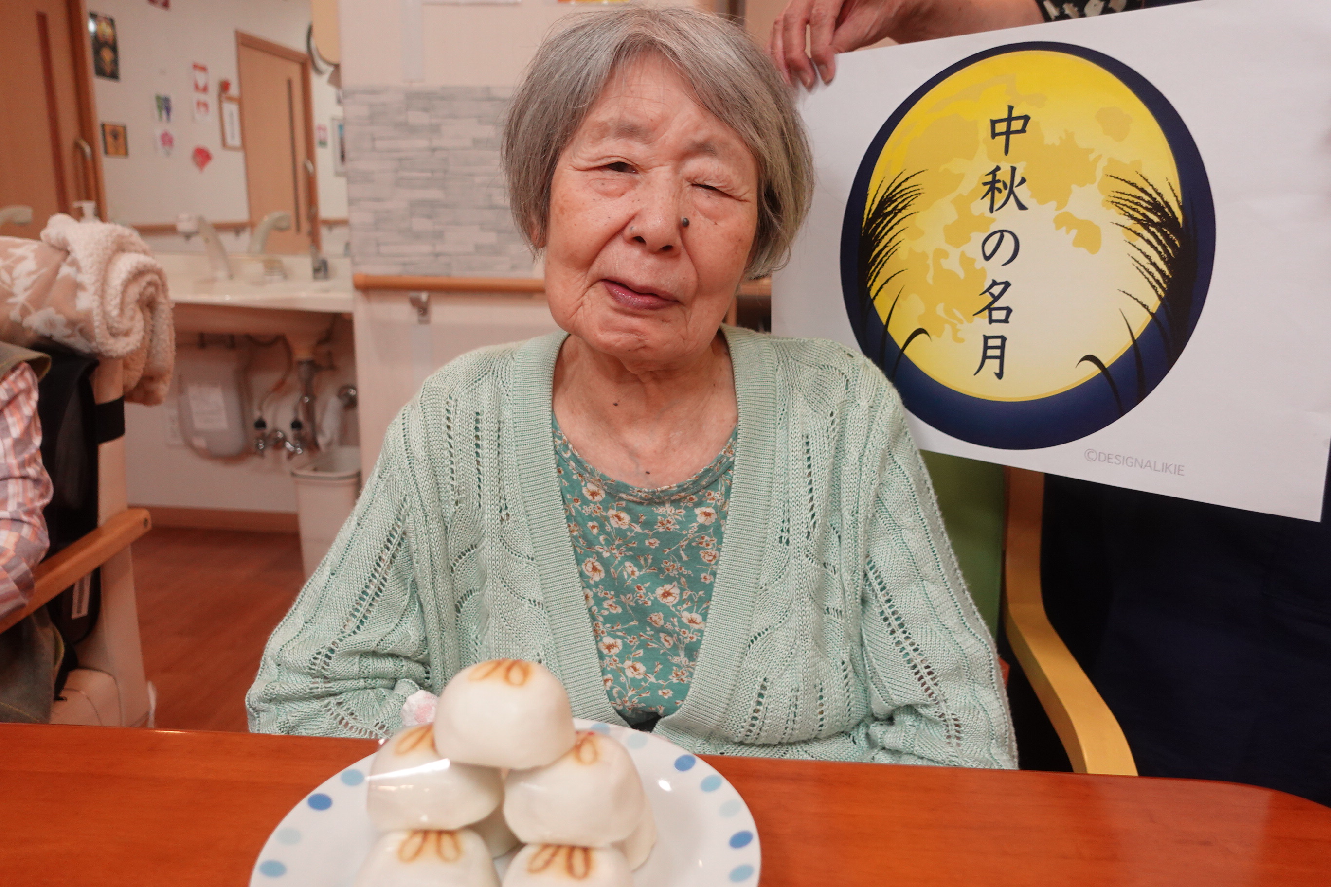 お月見の前に、おやつでうさぎ饅頭をご用意しまして記念撮影を♪