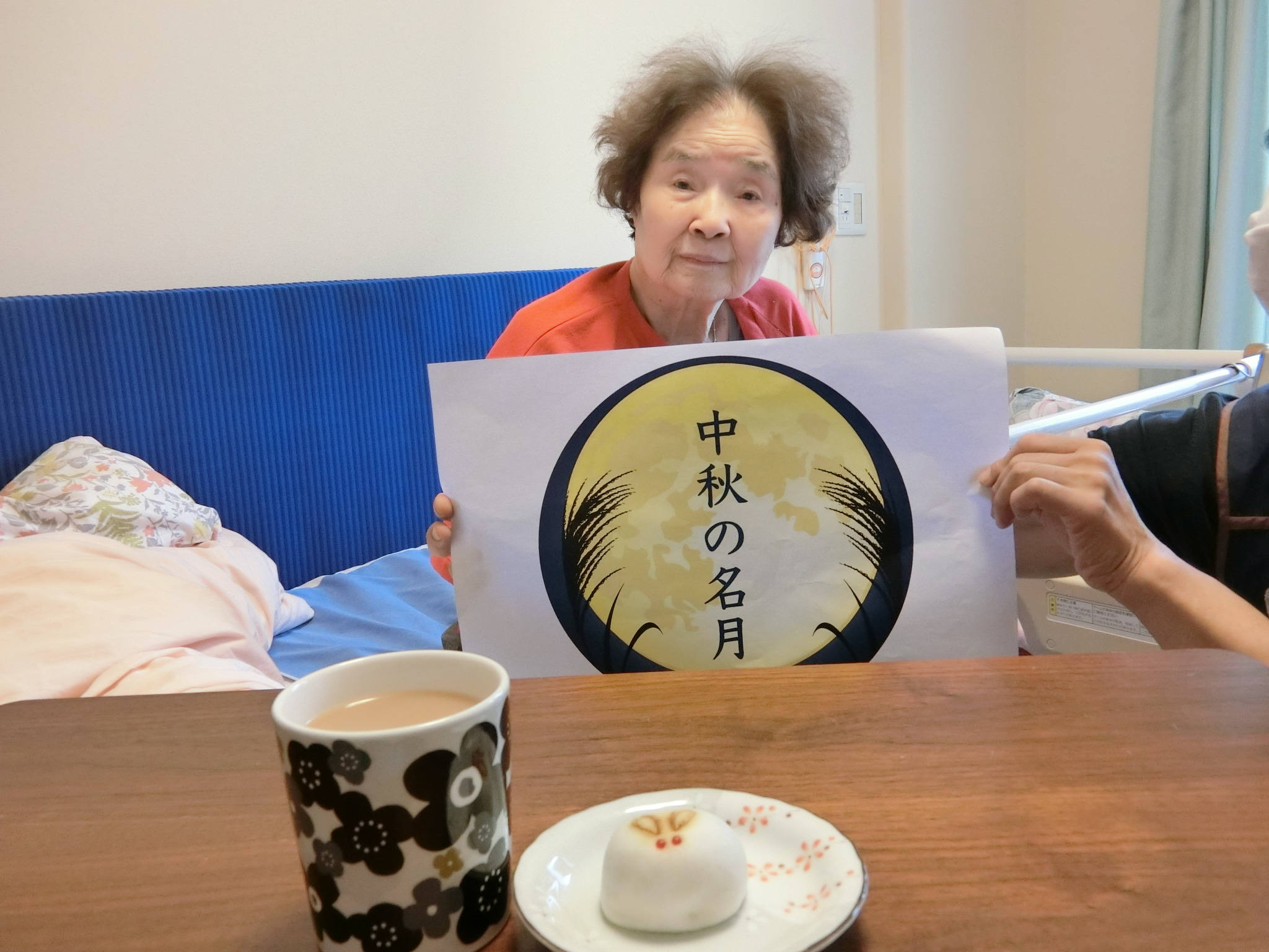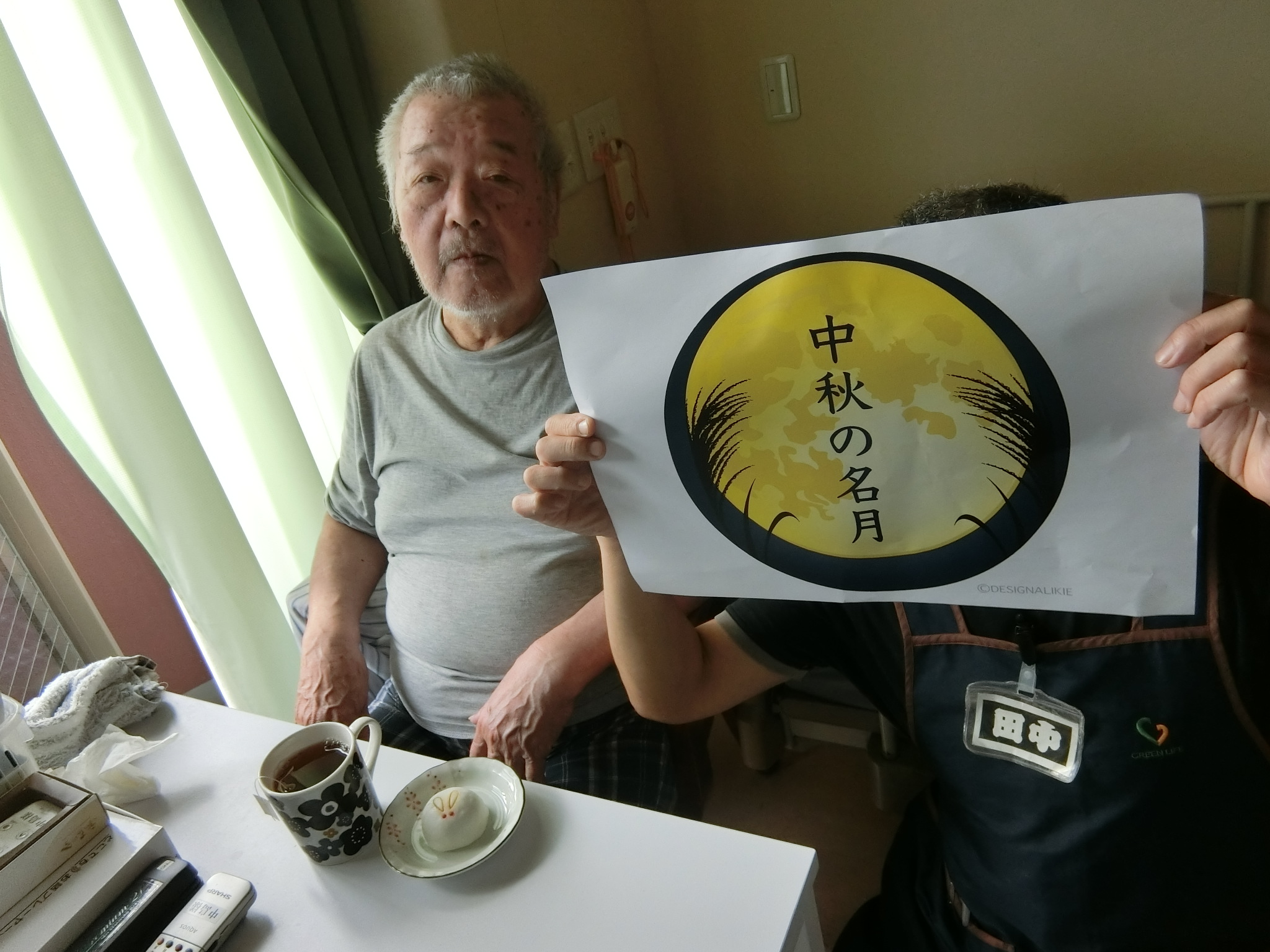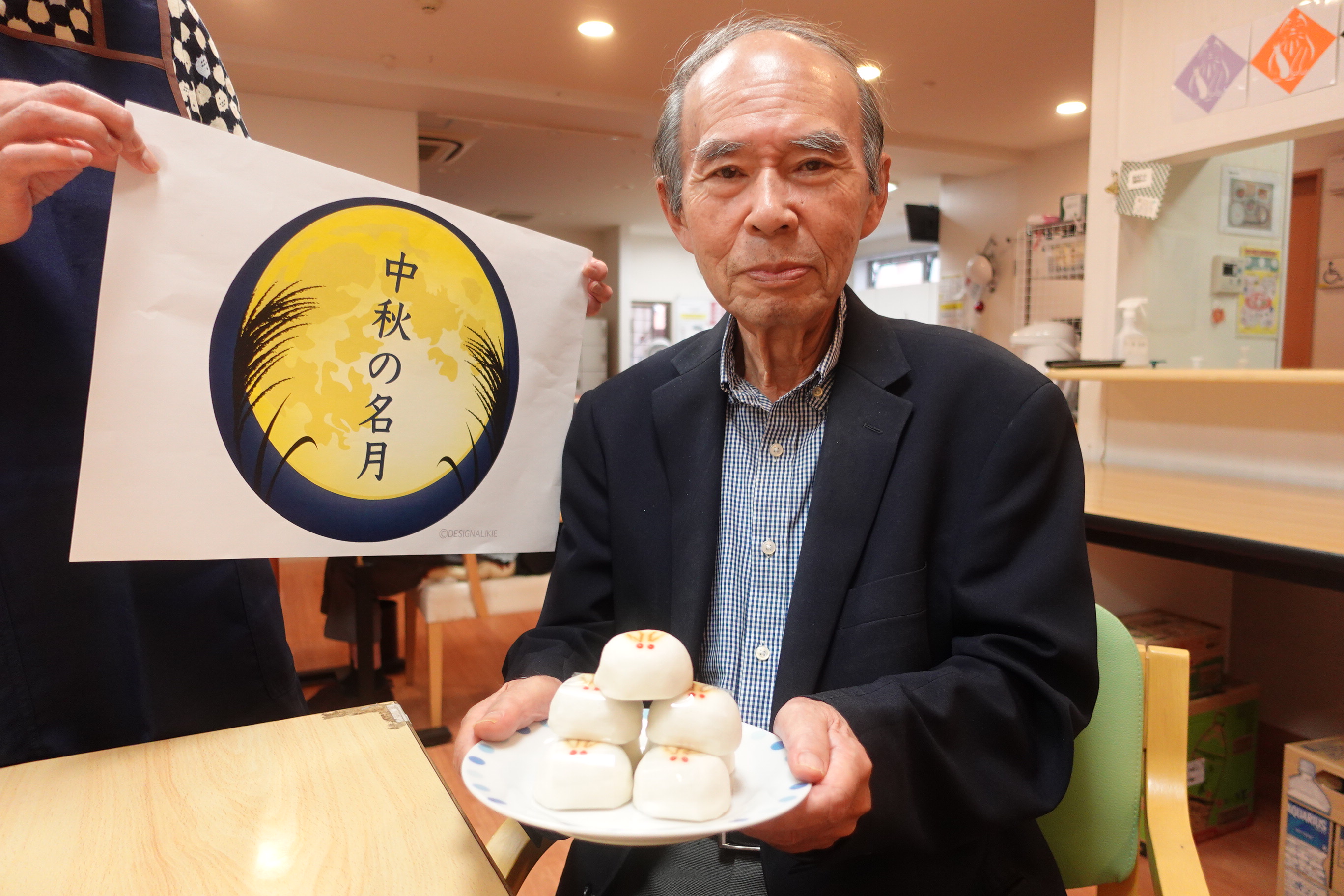 お月見の前に、おやつでうさぎ饅頭をご用意しまして記念撮影を♪