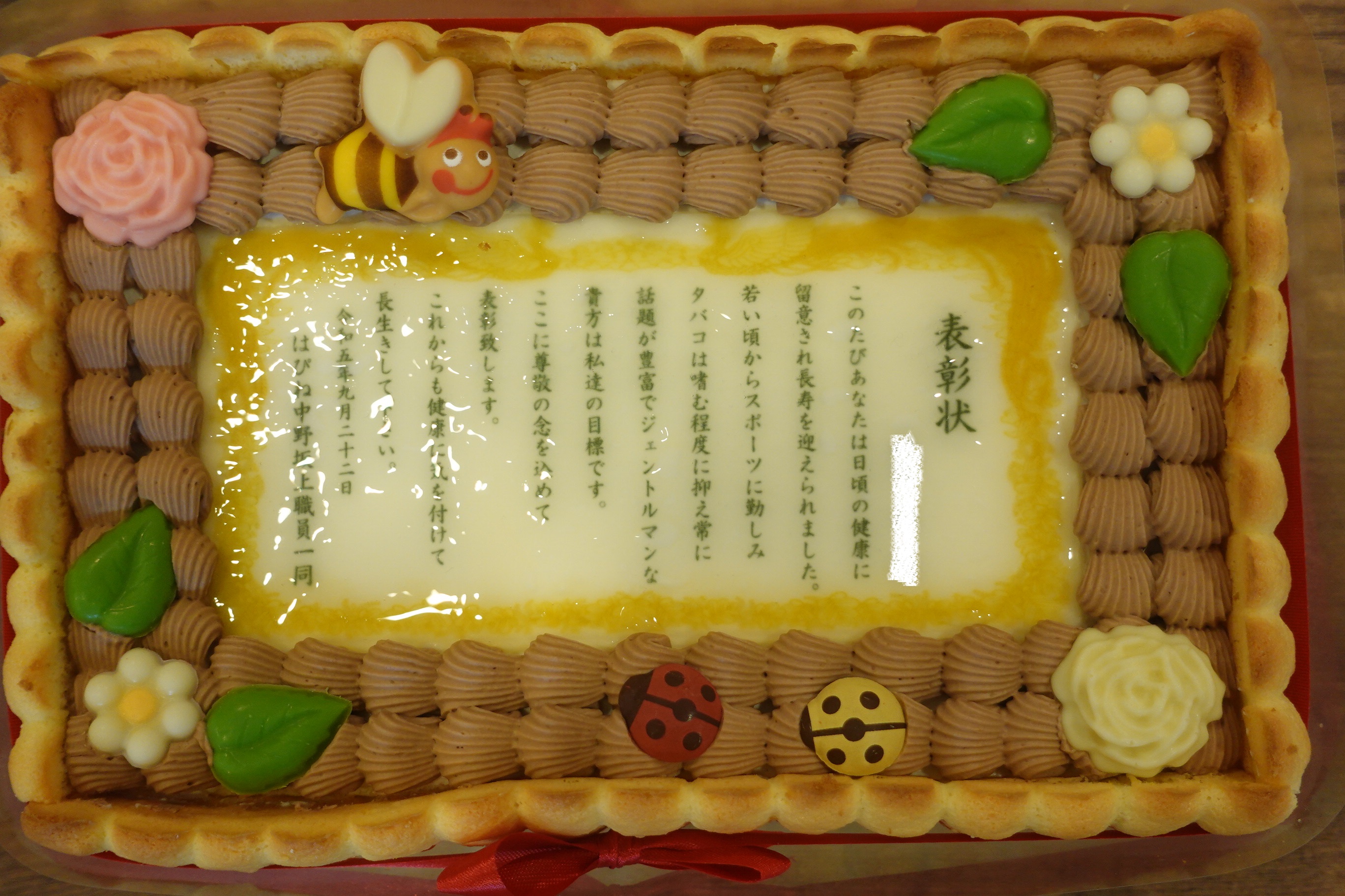 バースデーケーキは、表彰状にお名前入りの特別品をご用意!