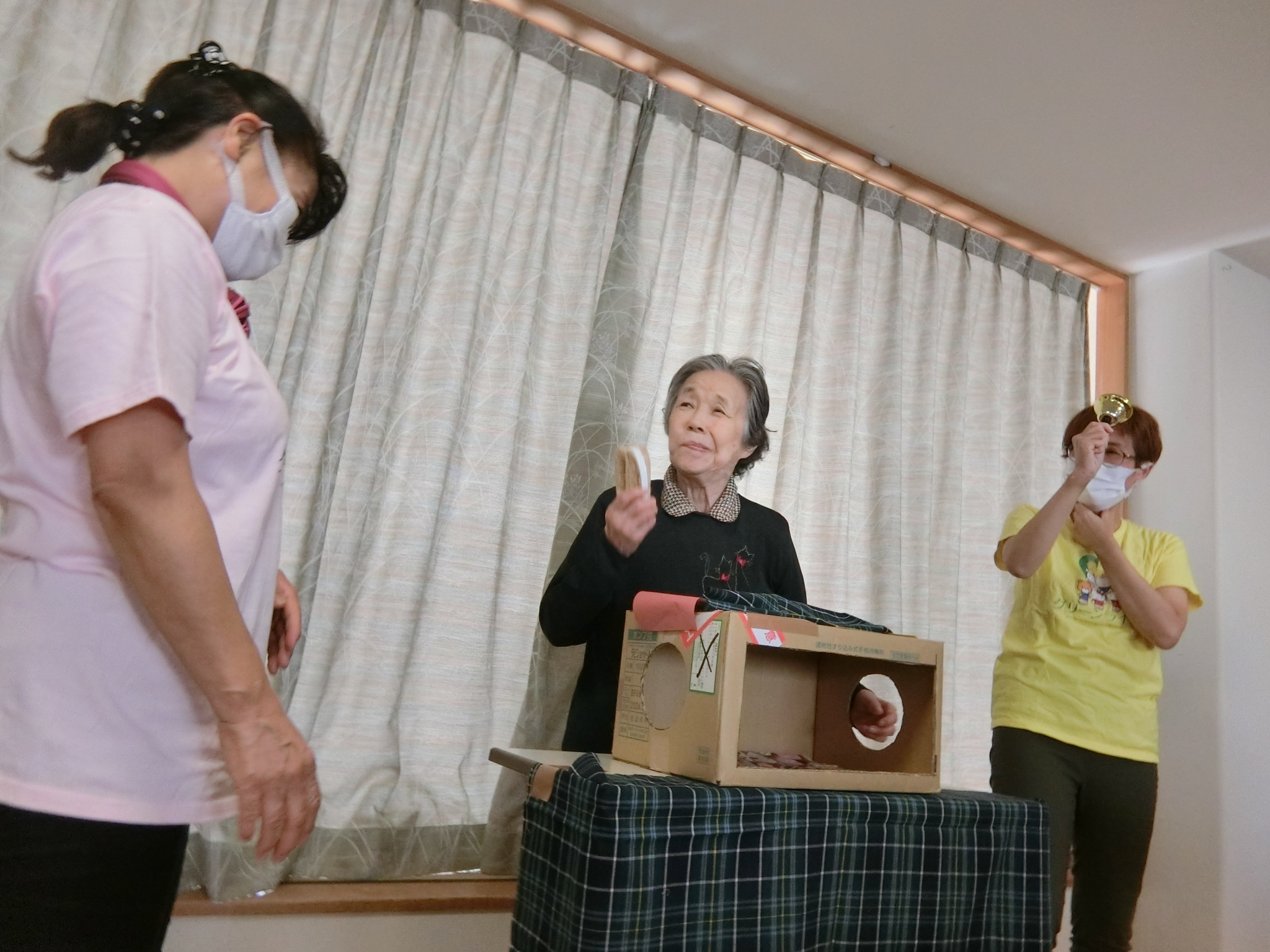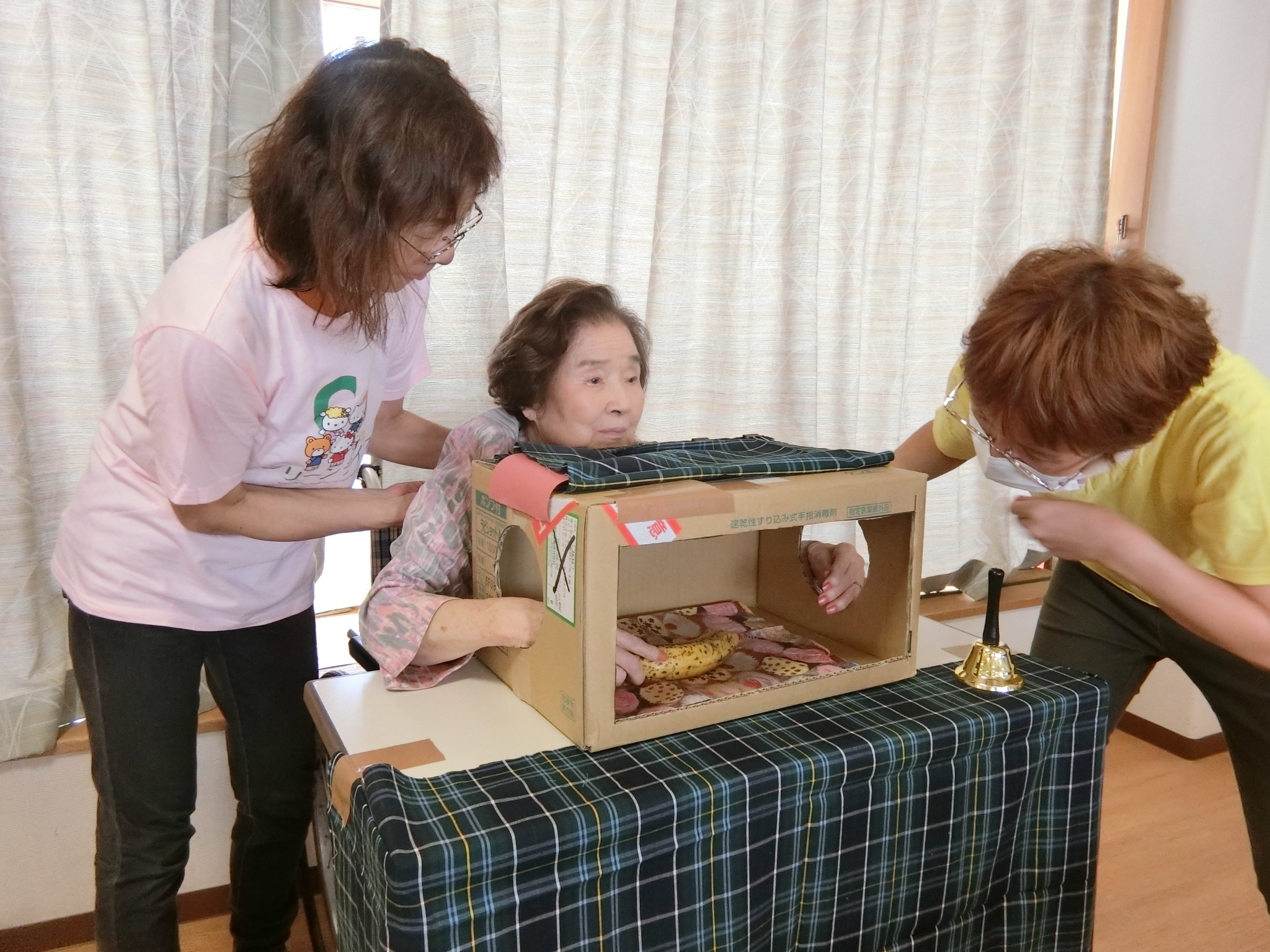 3階では、バラエティー番組でもおなじみの「箱の中身はなんだろな?」ゲームを行いました!!