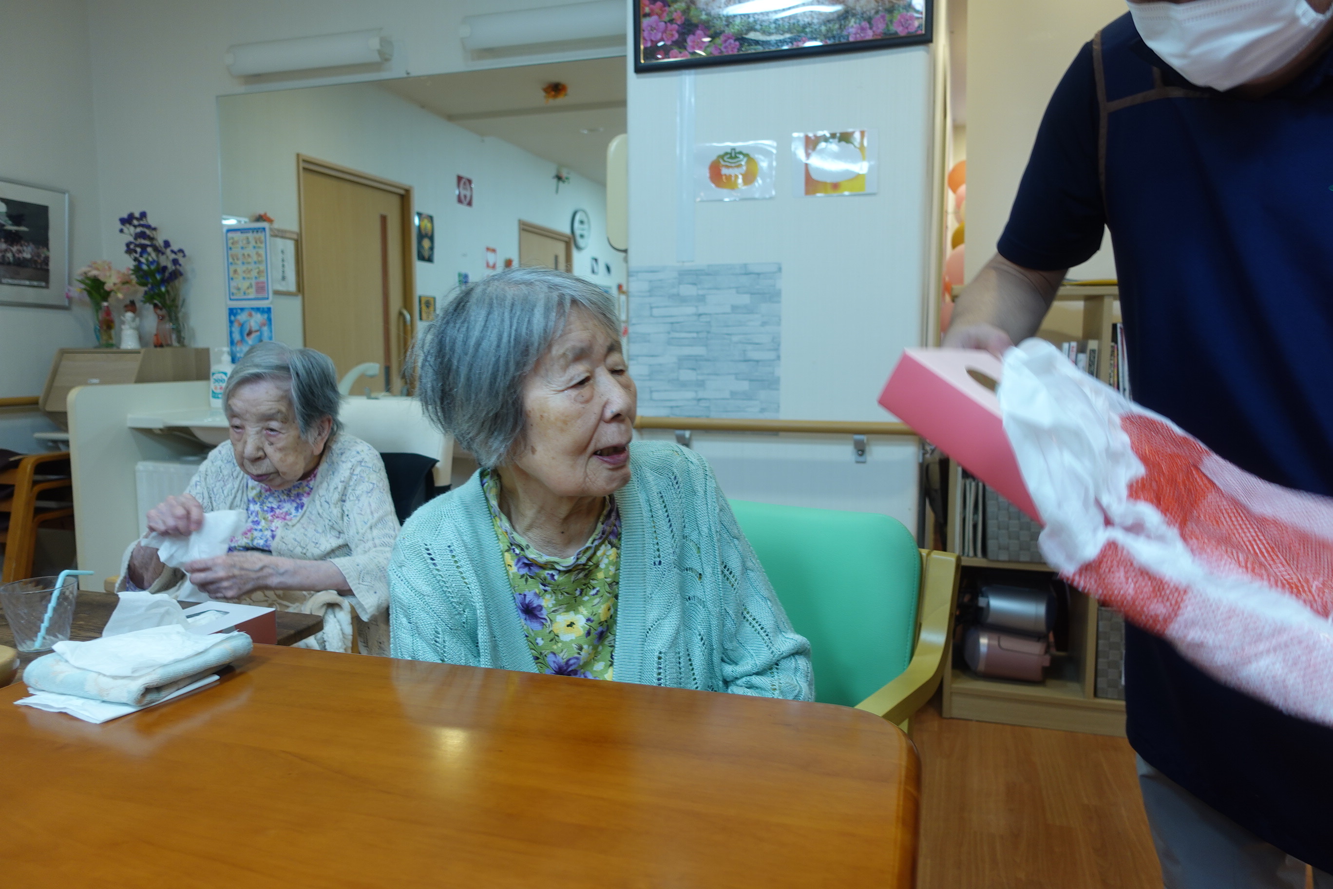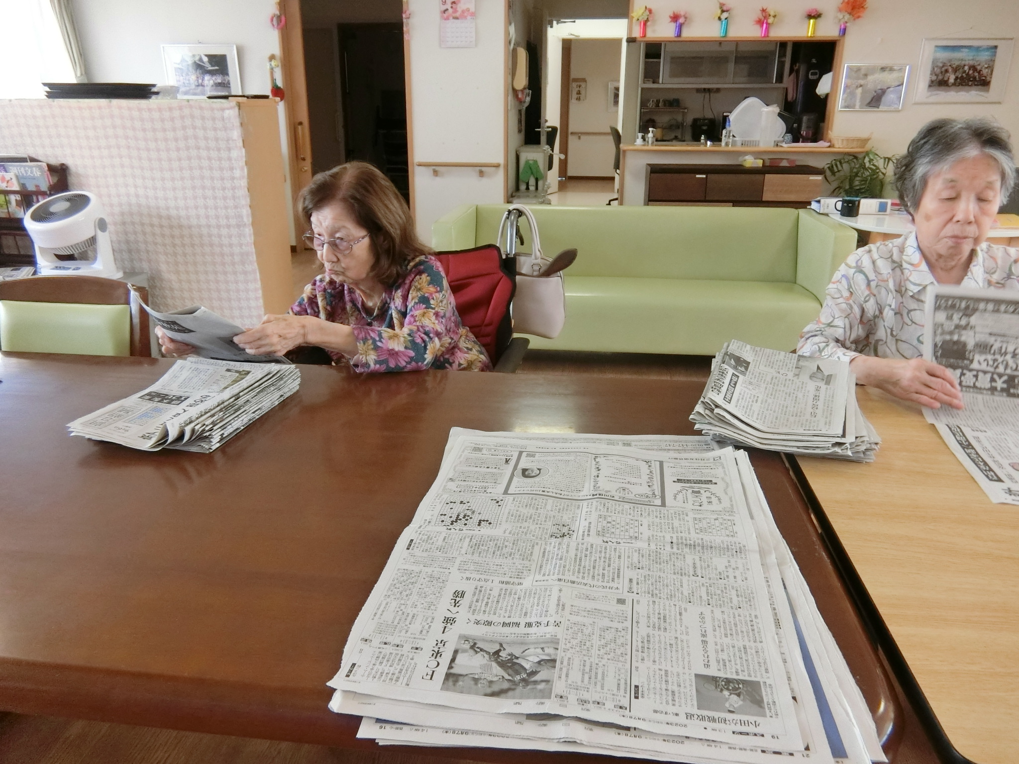 本日は、入居者様と一緒に新聞紙折りを行いました!