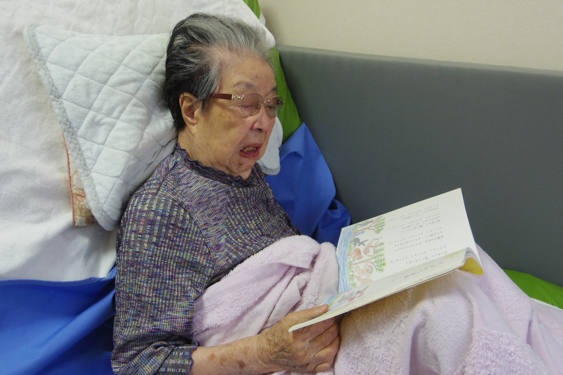 本日は、入居者様が歌集を読んでいる際のご様子。