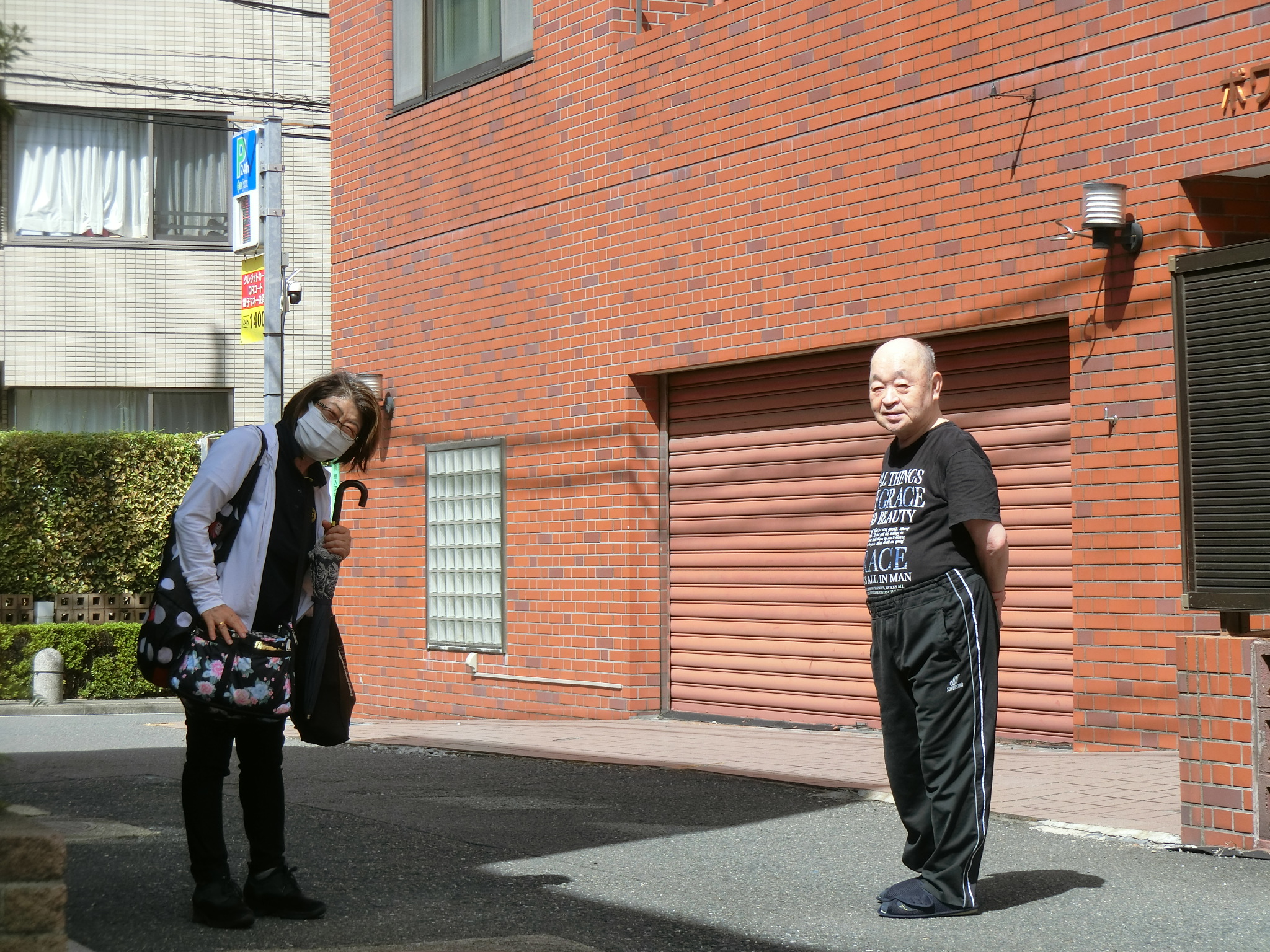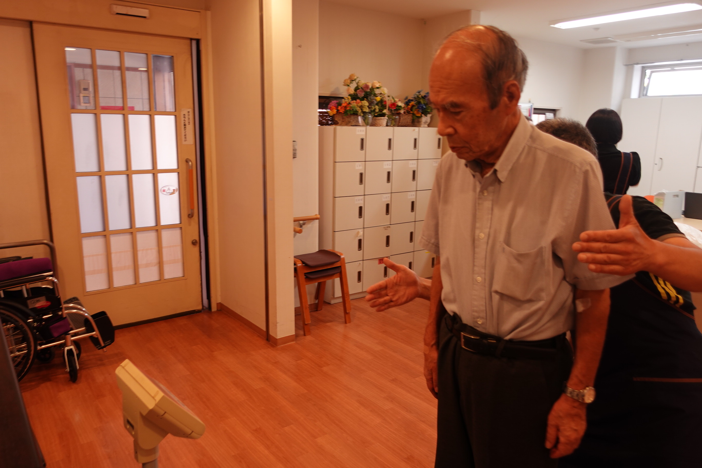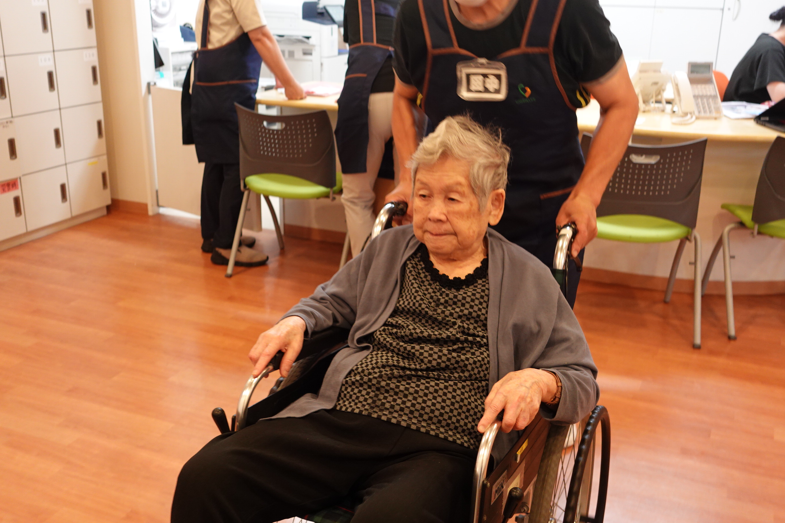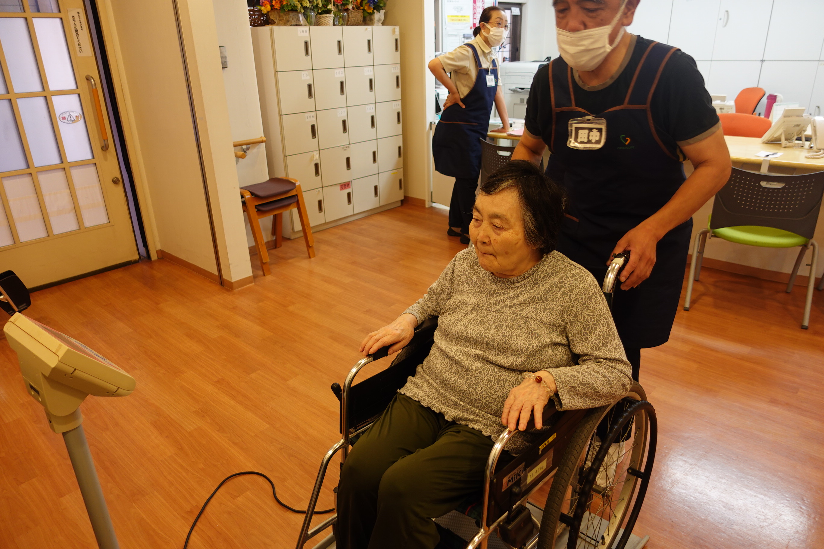 入居者様をお誘いして玄関前へ出て日光浴を♪